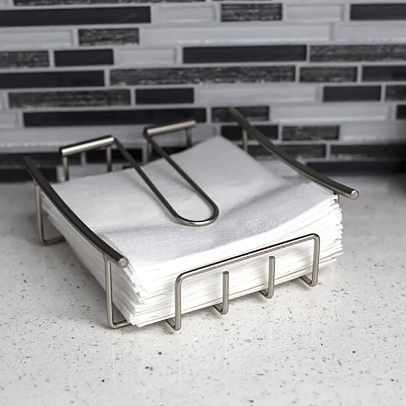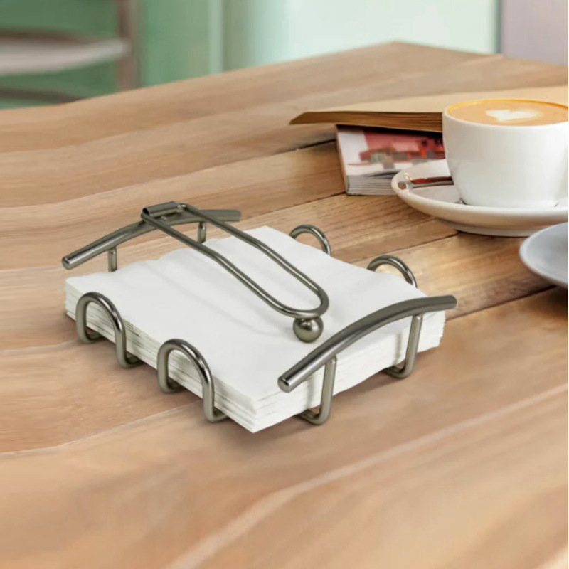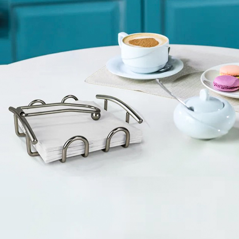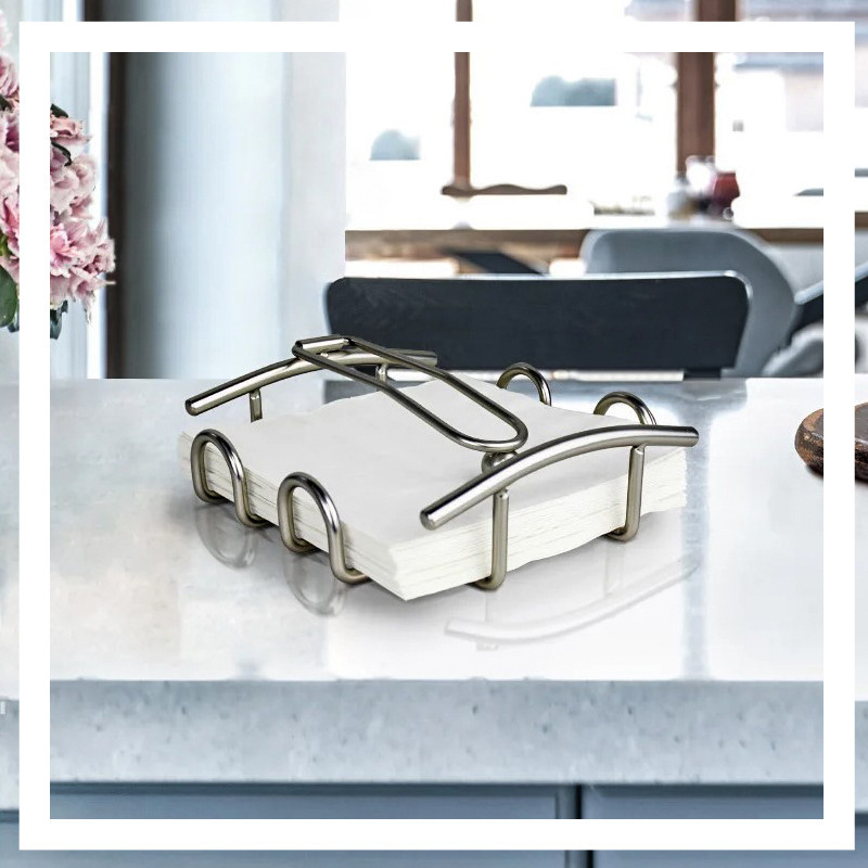 ヨーロッパスタイルの鉄芸の四角形の電気めっきの色のナプキンの棚のデスクトップのアイデアのナプキンの棚のホテル用の金属のナプキンの棚