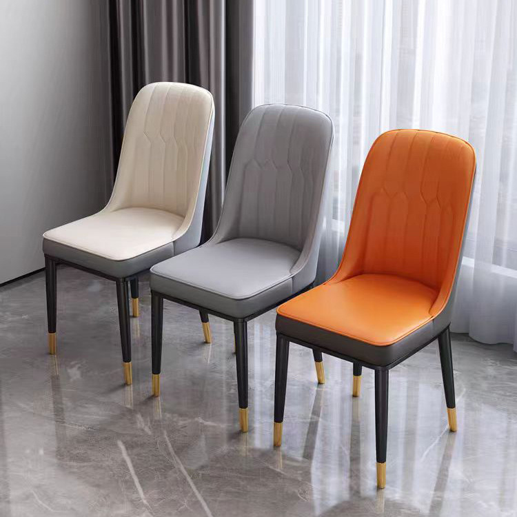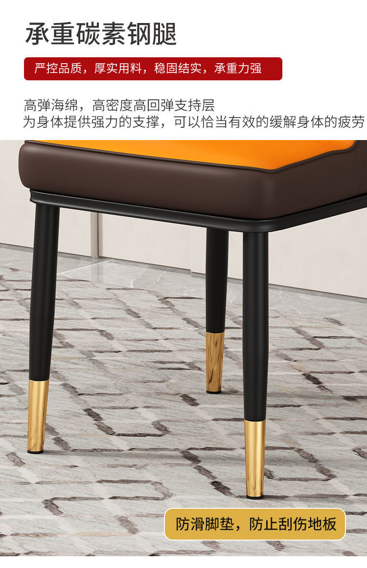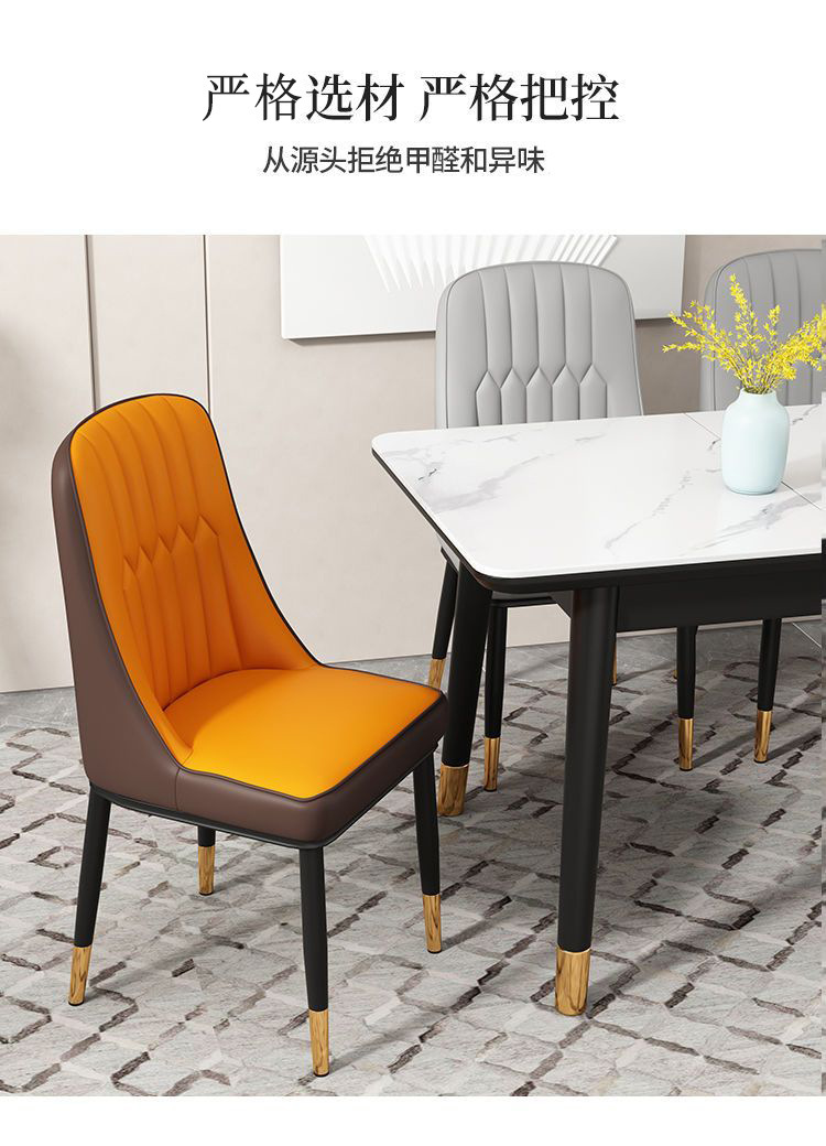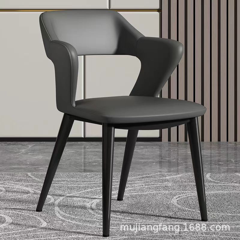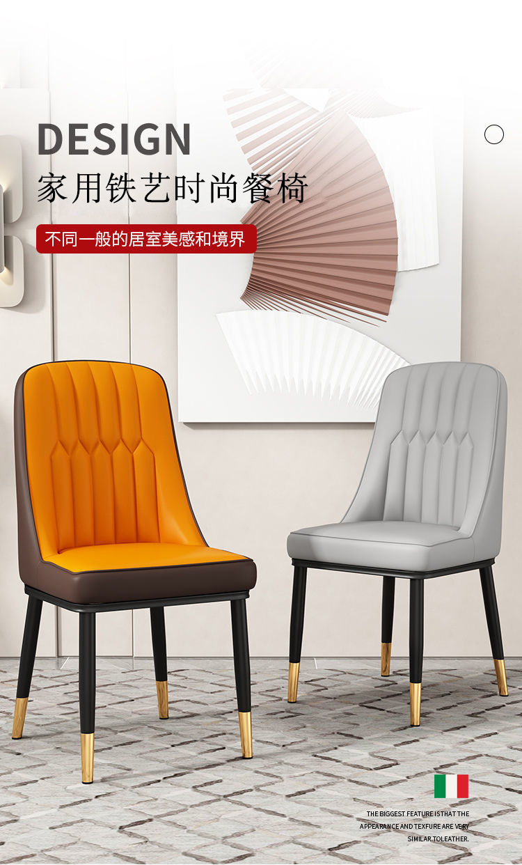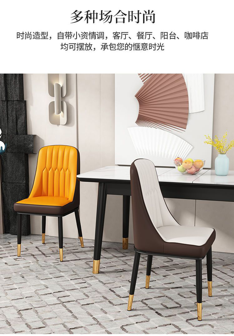 北欧轻奢餐椅家用现代简约梳妆凳子餐厅酒店皮革软包铁艺靠背椅子