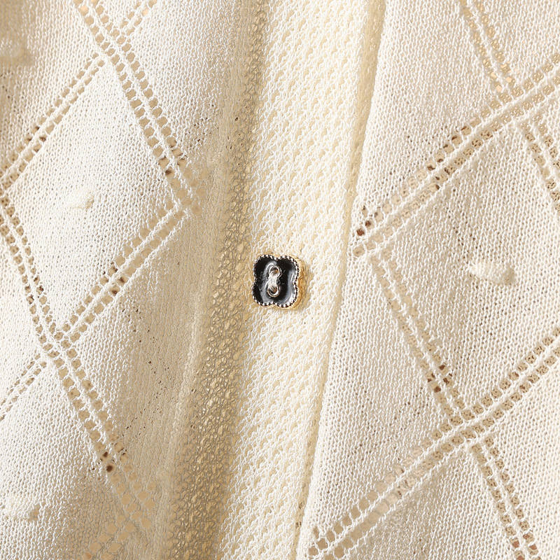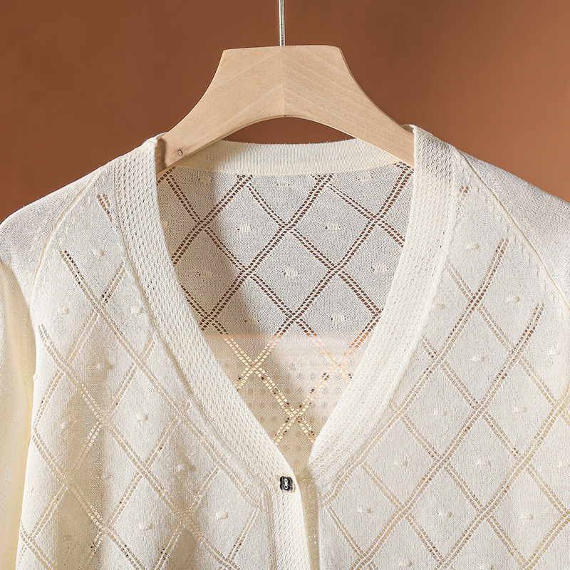 大きいサイズの夏の新しい七分袖中空ニットカーディガンジャケット女性用サスペンダースカート日焼け止めシャツショールブラウス