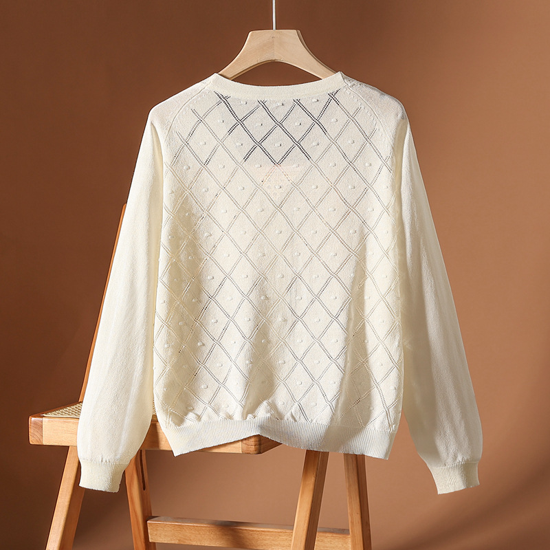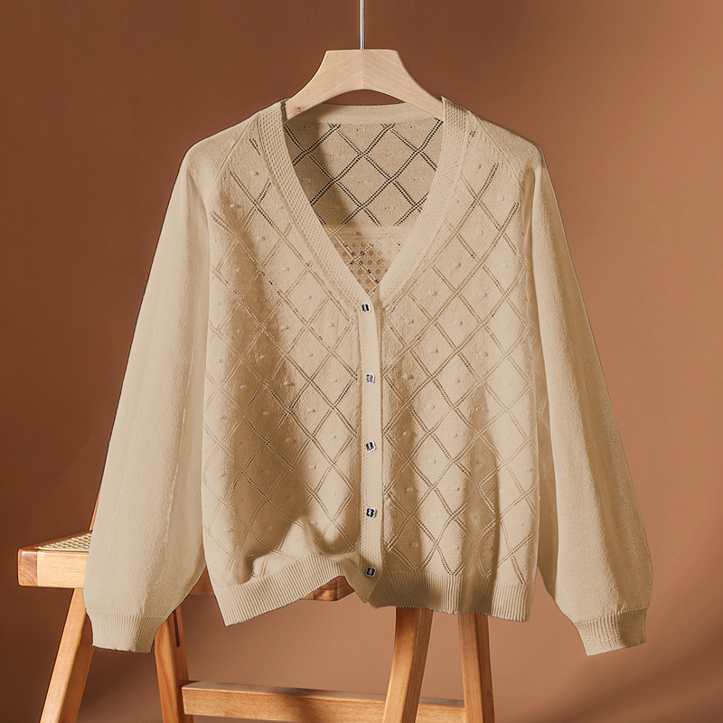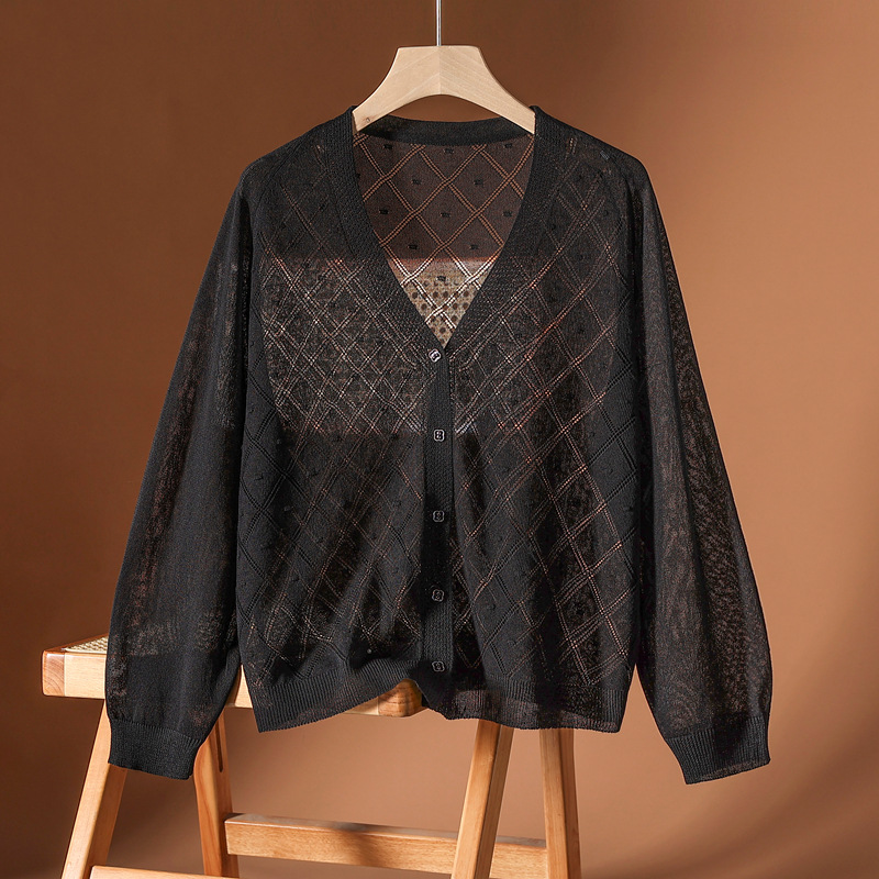 春夏の新型vネックの氷糸のニットのカーディガンの女性のゆったりしている大きいサイズは長袖の日焼け止めのシャツにスカートのエアコンのシャツを配合します。