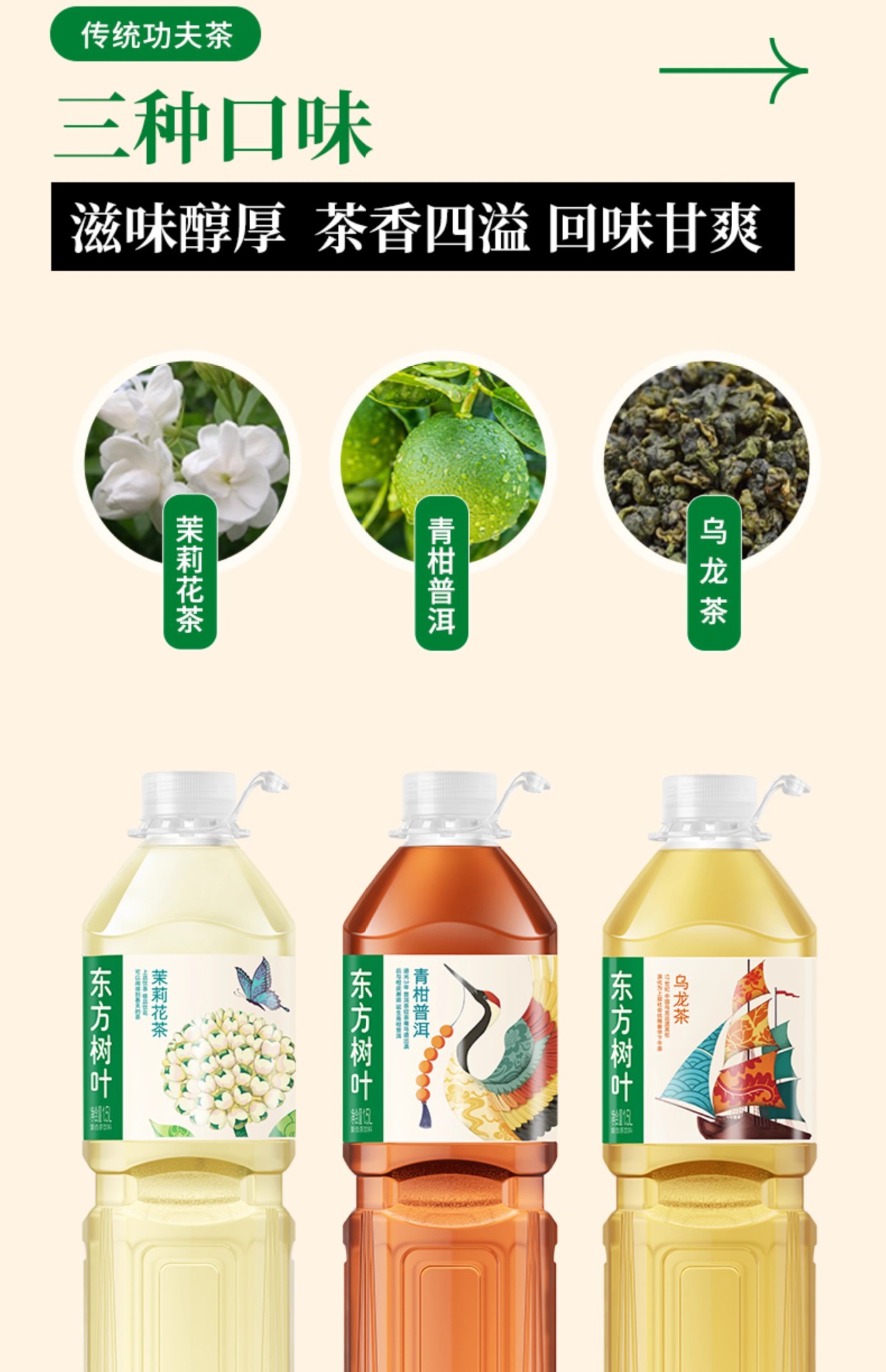 ML青柑糖东方树叶普洱茶饮料黑乌龙0500无糖卡农夫山泉茉莉花茶0