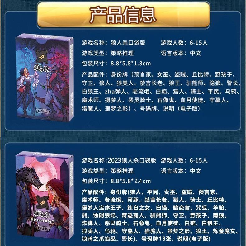 新款正版狼人杀桌游玩具卡牌游戏全套成人户外家用用儿童礼物