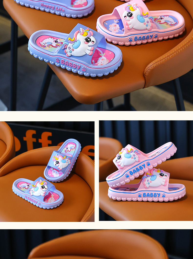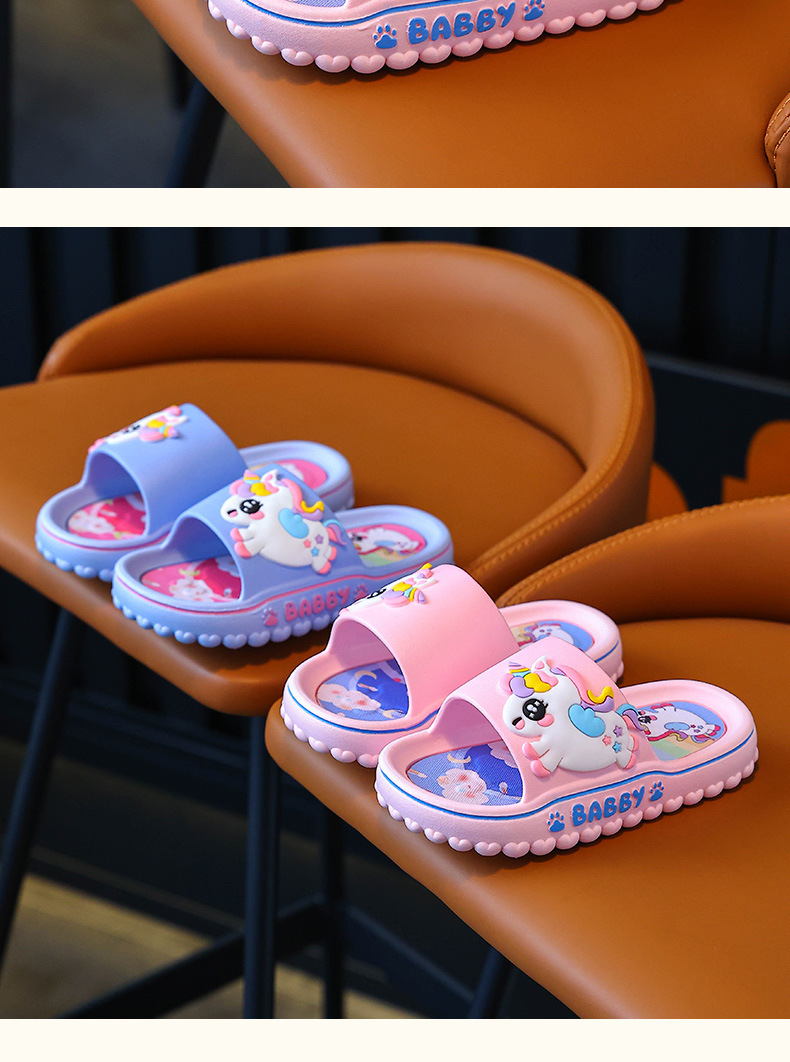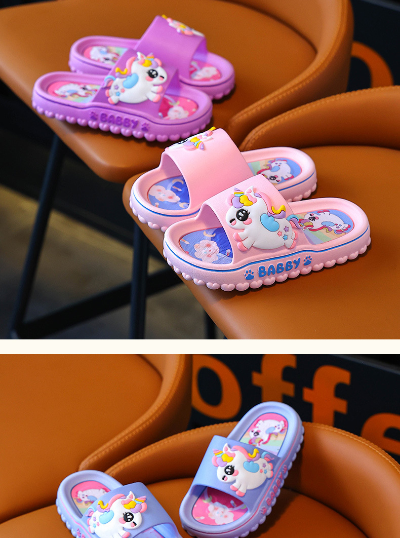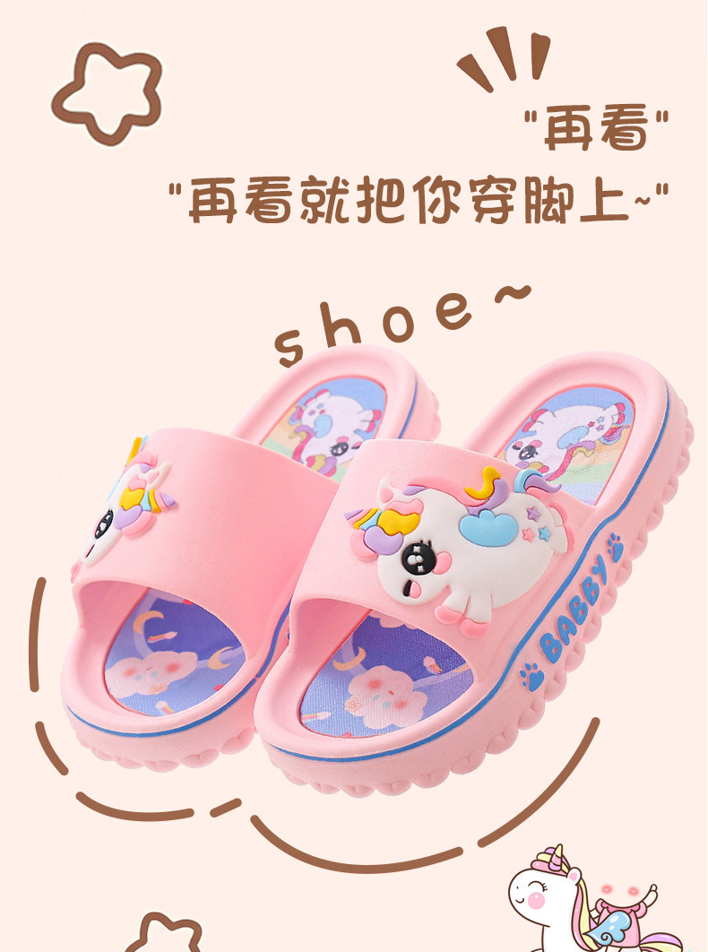 ユニコーン子供スリッパ女性夏女の子漫画かわいい室内滑り止めソフト底親子女の子サンダル