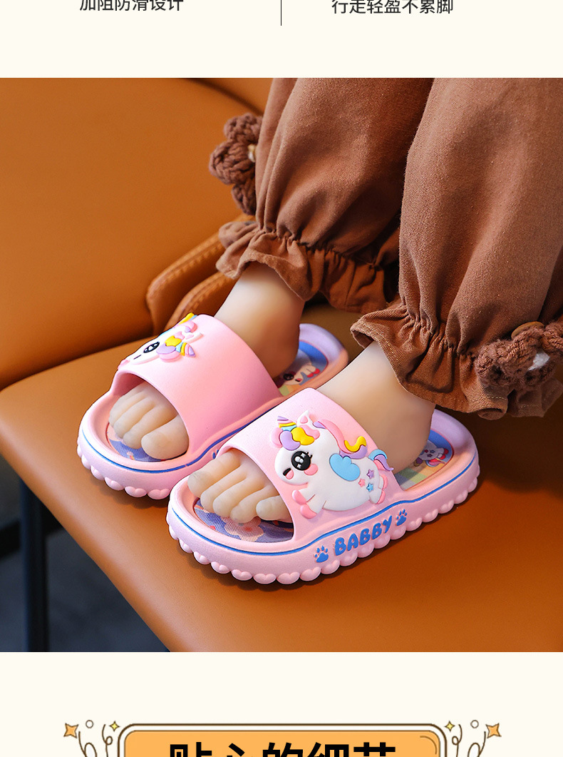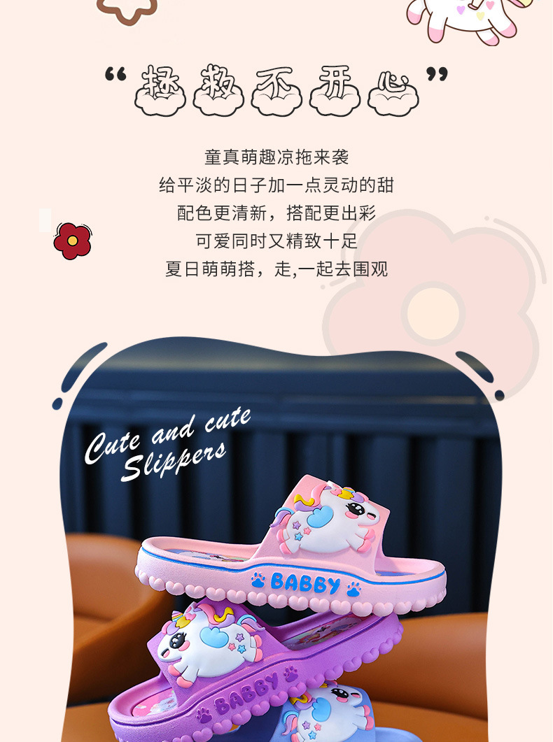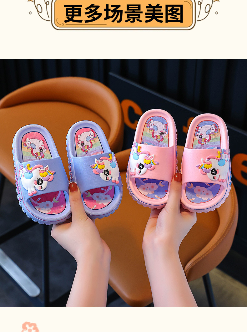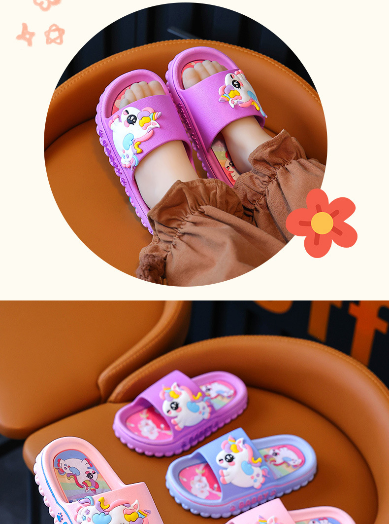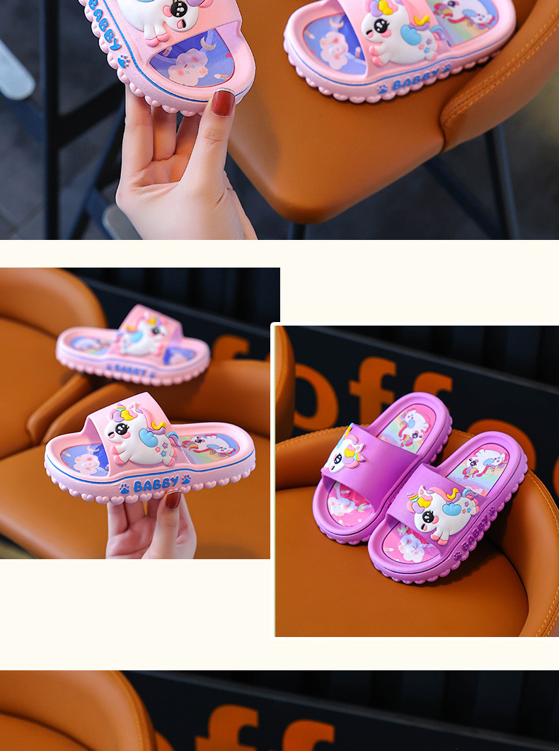ユニコーン子供スリッパ女性夏女の子漫画かわいい室内滑り止めソフト底親子女の子サンダル