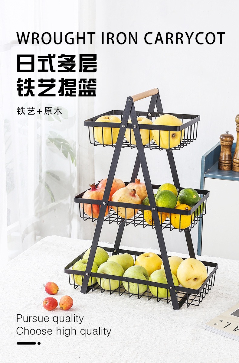 国境を越えた新型木製手提げバスケット鉄芸多機能フルーツバスケット台所多層間食収納棚卸売り