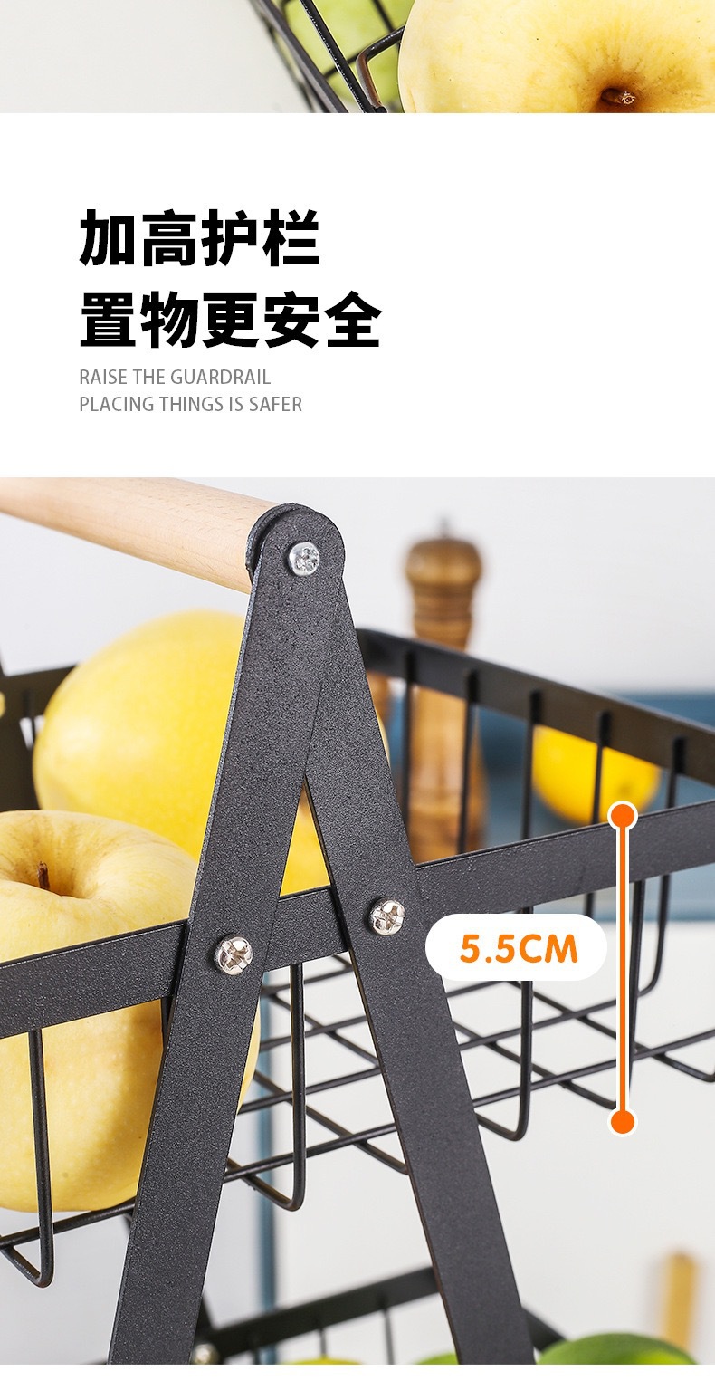 クロスボーダー取り外し可能な鉄芸二重フルーツバスケットキッチンリビングルームのデスクトップ収納棚パンバスケット木柄手提げバスケット