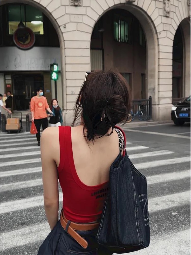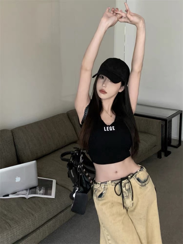 2871 # ギャルUネクタイの胸パッド美背プリントのアルファベットのベスト