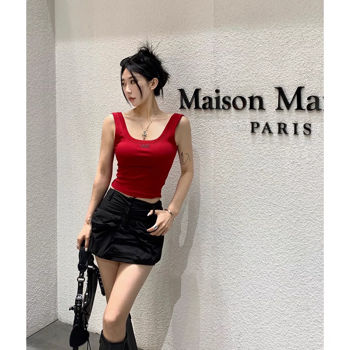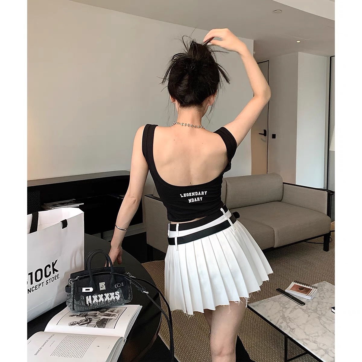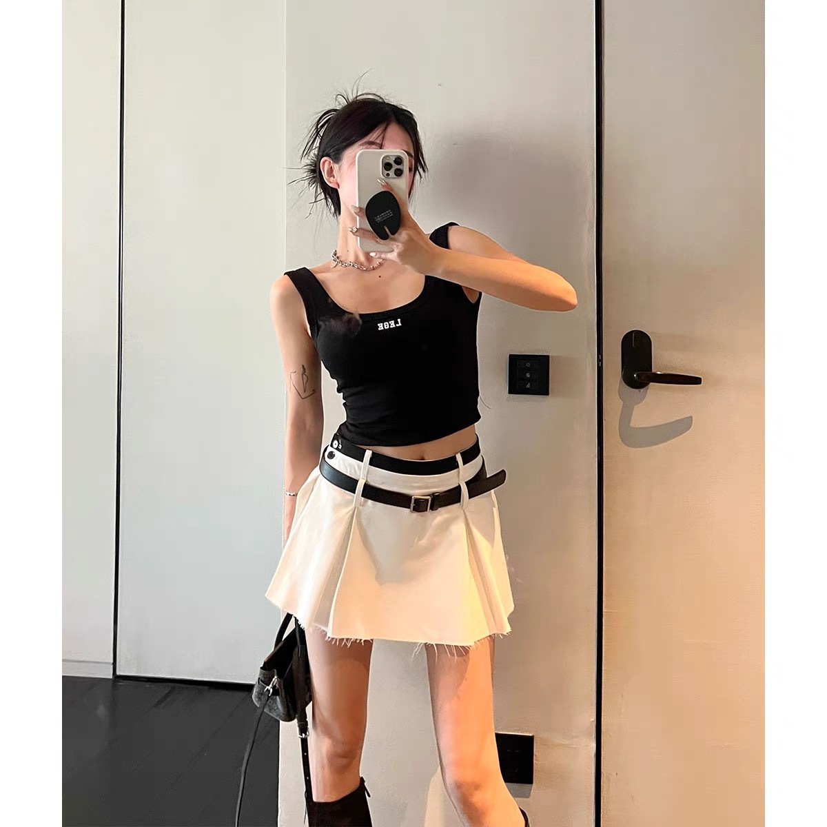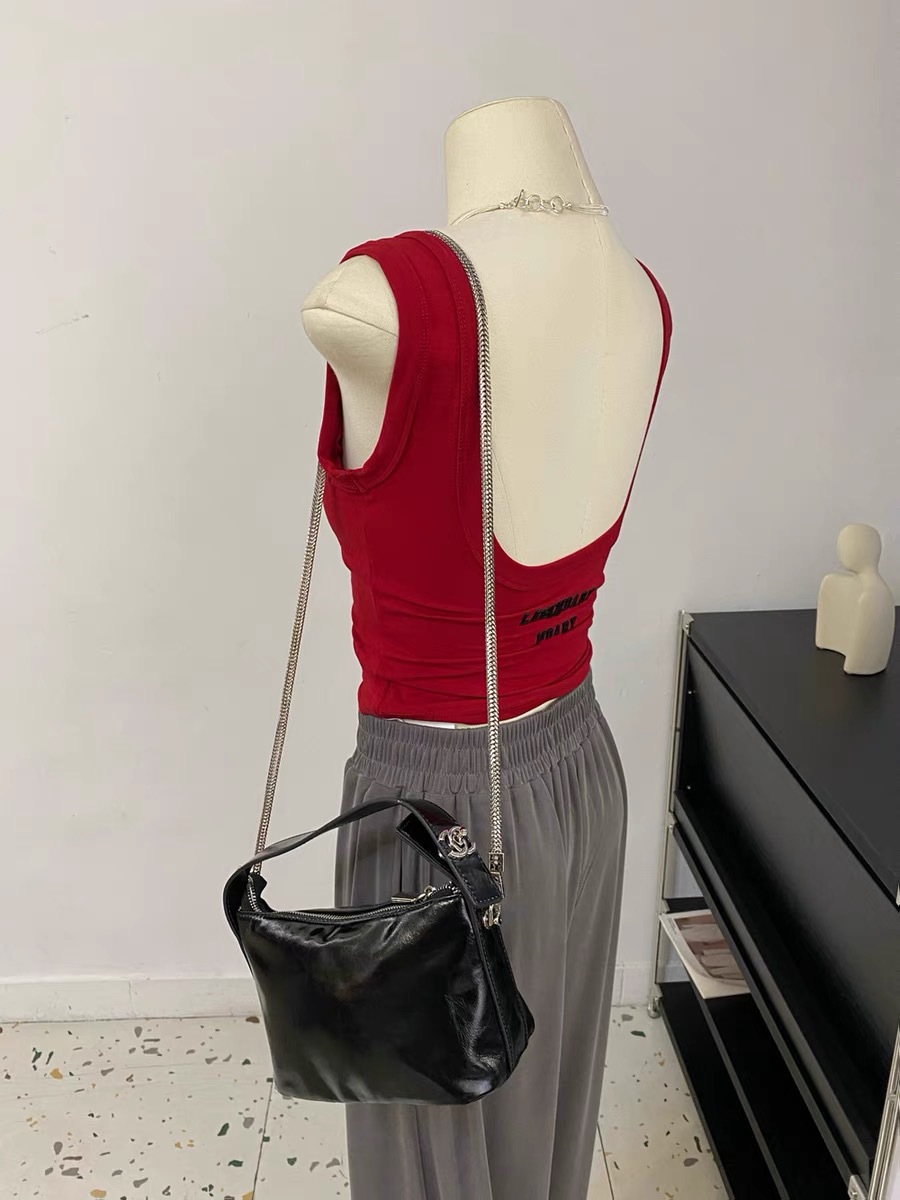 C014 # オープンフォークのストラップ付きの女性2025の新しい胸パッド付きの短い不規則性