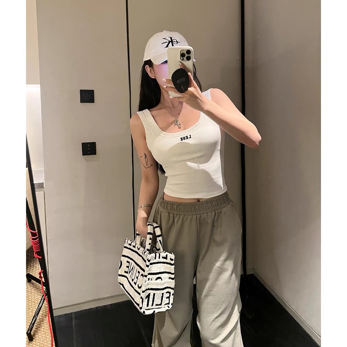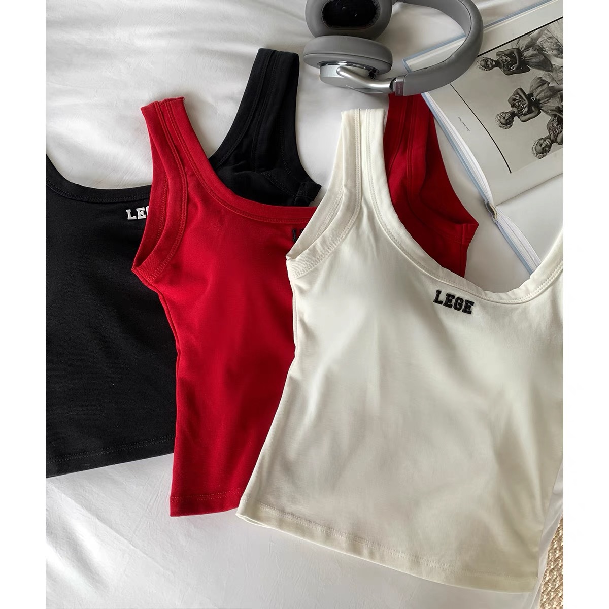 H334 # 人绵落书き可爱い # くまちゃんプリント # キャミソール # 女性は胸パッド付き # 美背レースサイドにインナーアウト