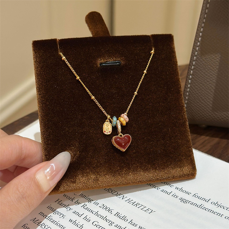红色爱心平安吊坠彩色滴油项链女秋冬轻奢小众毛衣链长款高级感