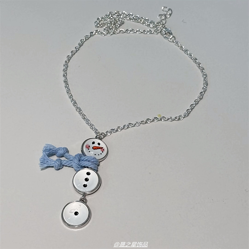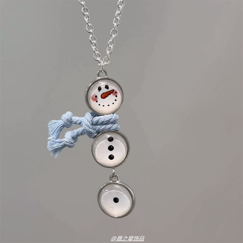 ああ!とてもかわいい〜子供っぽいボタン雪だるまペンダントネックレス絶妙で多用途な秋冬ニッチセーターチェーン
