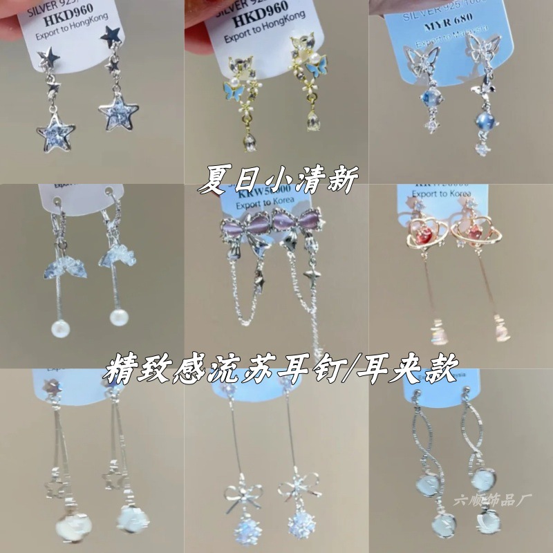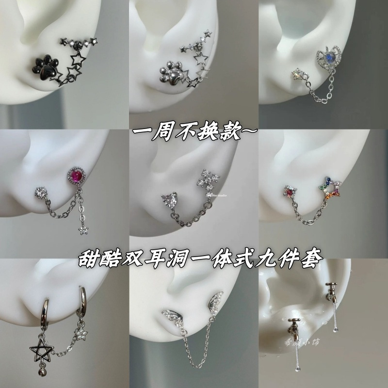 双耳猫爪五芒星イヤリング、ユニークなニッチデザインイヤリング、夏の軽い高級感とハイエンドの気質イヤリング