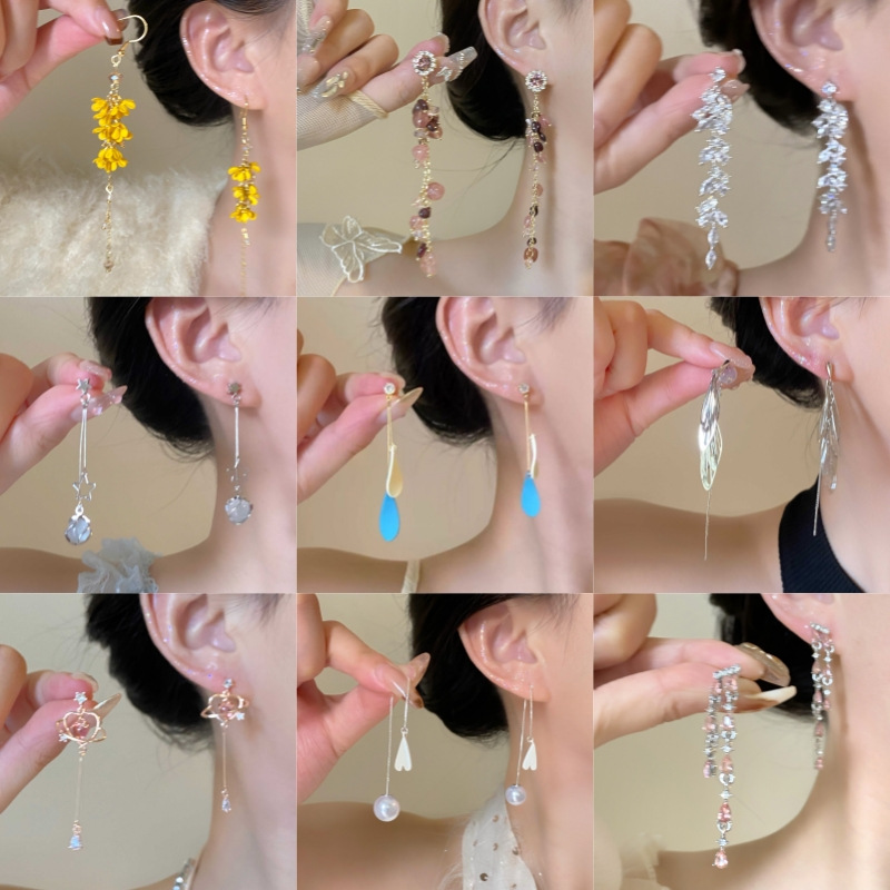 「迎春」超仙長型桂花流蘇イヤリング小衆軽豪華森系小清新長型休暇耳飾り女