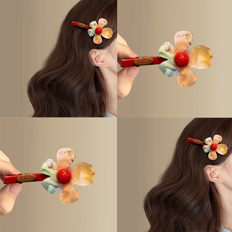 韩系醋酸炫彩花朵发夹女2025新款侧边夹刘海夹发卡高级感bb夹头饰