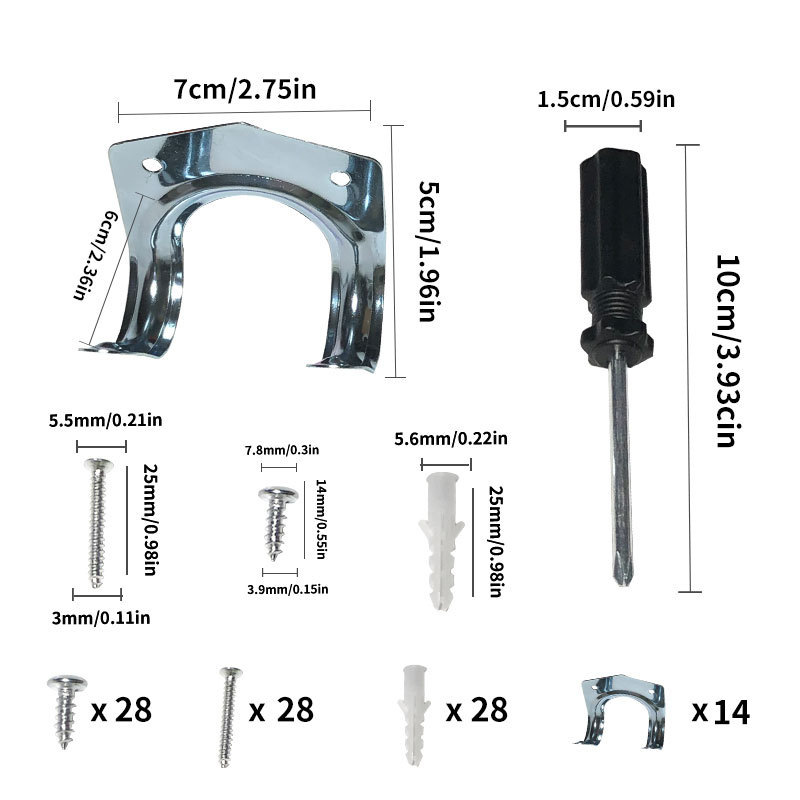 15pc挂钩+30pc螺丝+30pc膨胀管+30pc膨胀螺丝+1pc螺丝刀:单套13*8*8cm 570g/套 50套/箱 41*28*28cm 28.5kg/箱