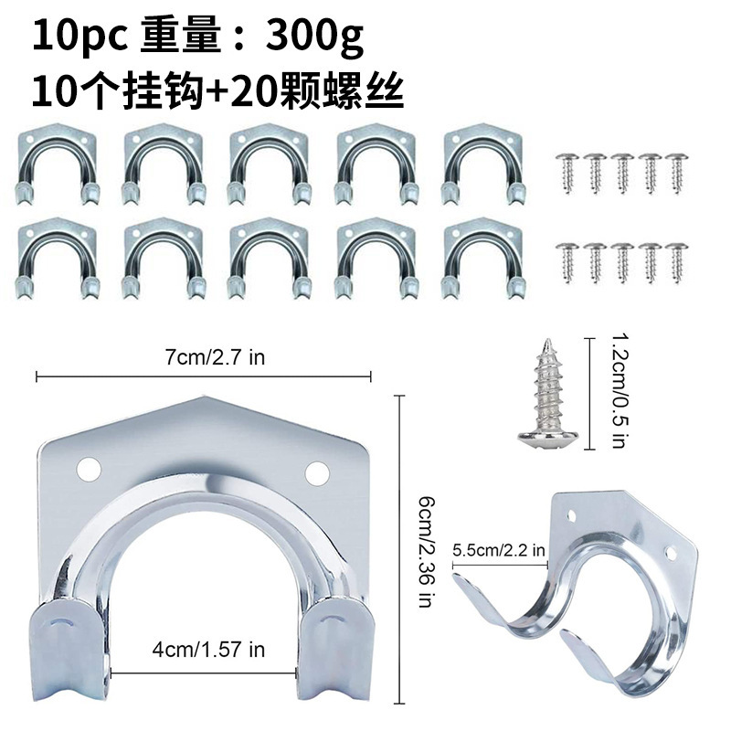 10pc挂钩+20pc螺丝 opp袋装:300g/套 50套/箱 箱规39.5*24*21cm 15kg