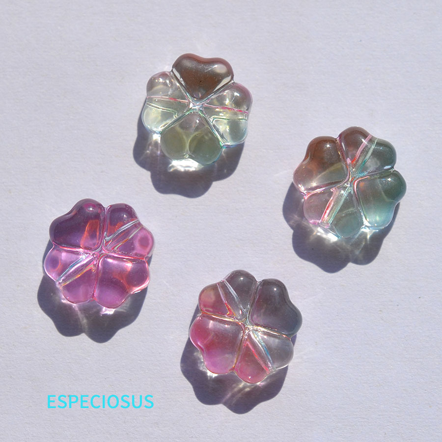 10MM水晶四叶草透明琉璃散珠渐变色直孔玻璃串珠diy手链饰品配件