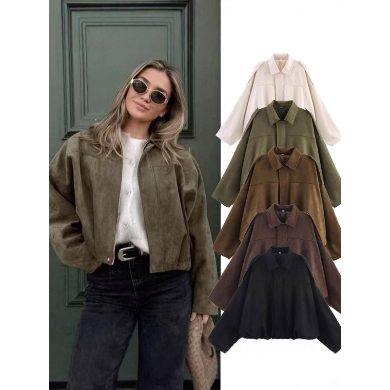 2025秋冬新作ヨーロッパとアメリカのクロスボーダーレディーススエード風ラペルボンバージャケットw107 8824