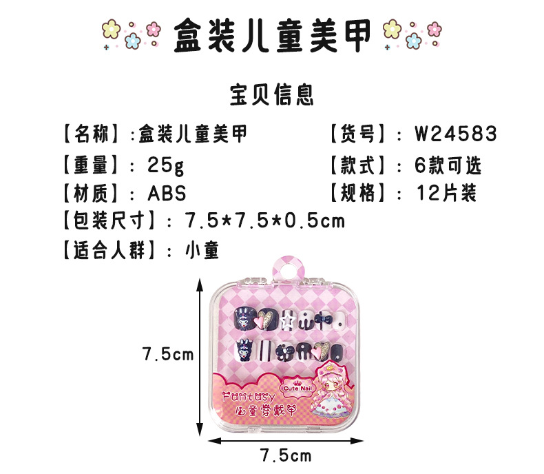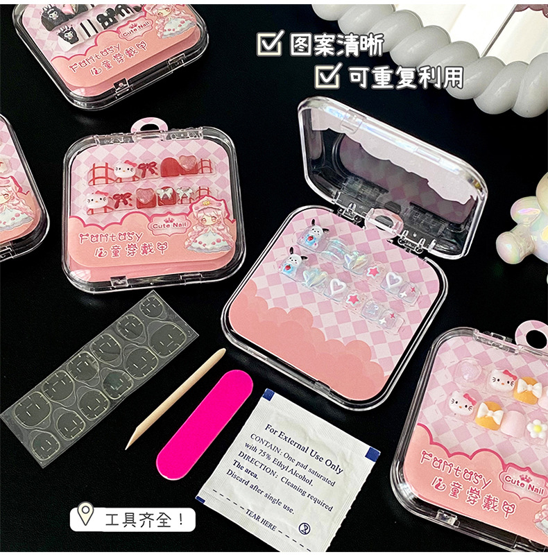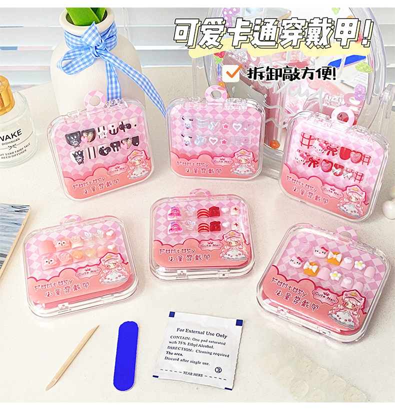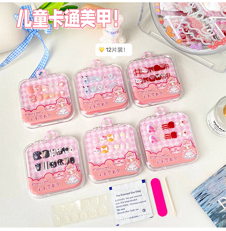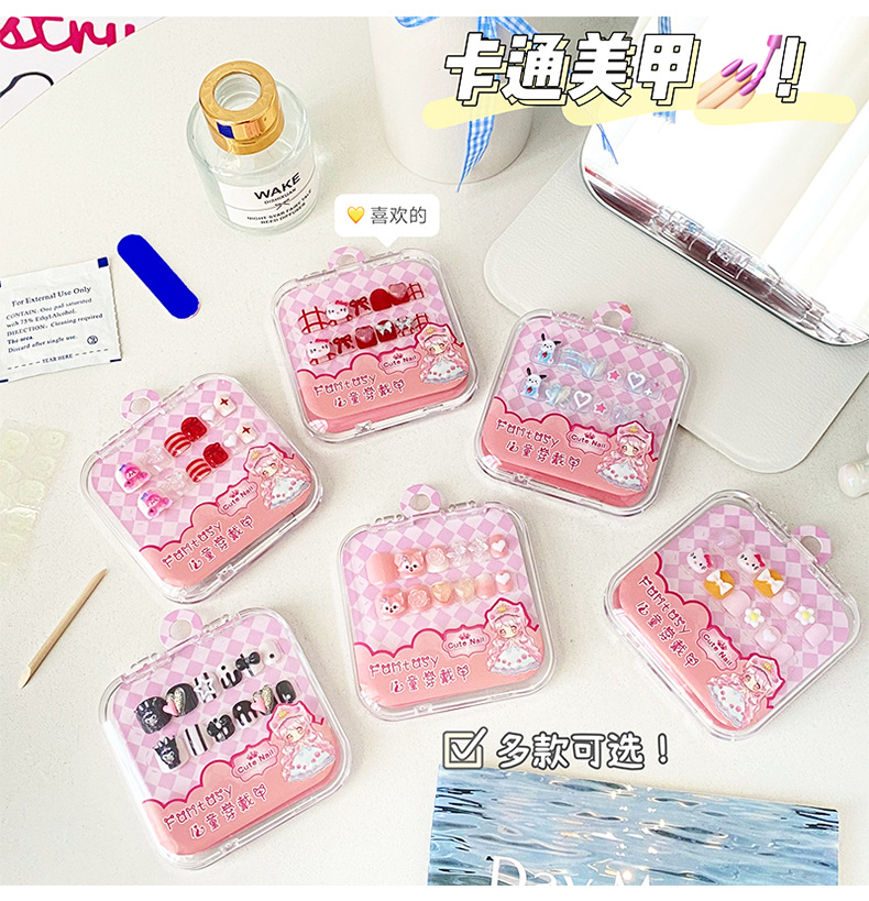 穿戴甲儿童短款美甲片穿戴式可拆卸假指甲贴片可爱卡通美甲合集