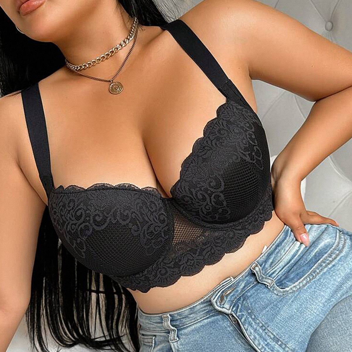 跨境女士黑色蕾丝舒适无缝软垫钢圈聚拢文胸宽肩带塑身支撑文胸