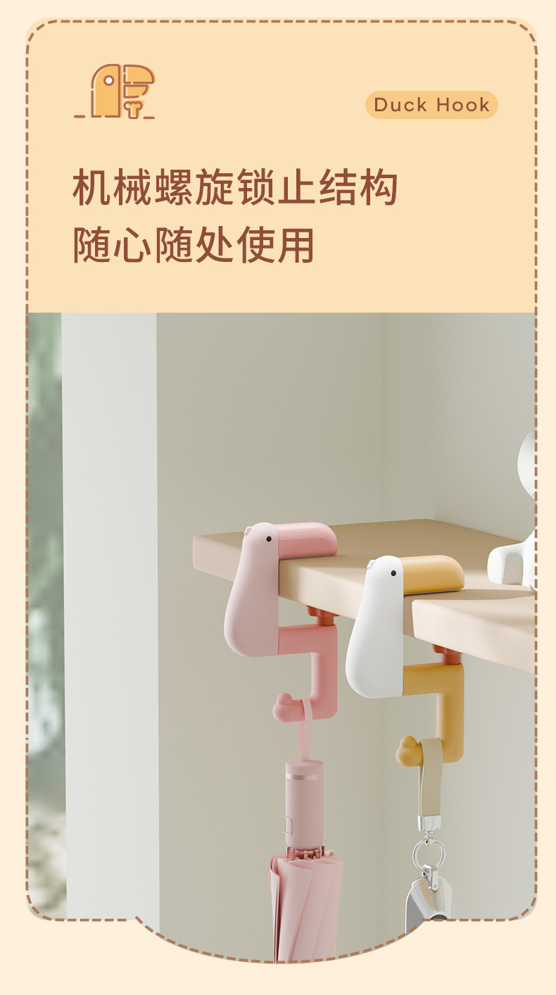 新しい思考のアヒルの学生のカバンはフックして穴を開けないで机の強力な荷重を受けて移動できます。