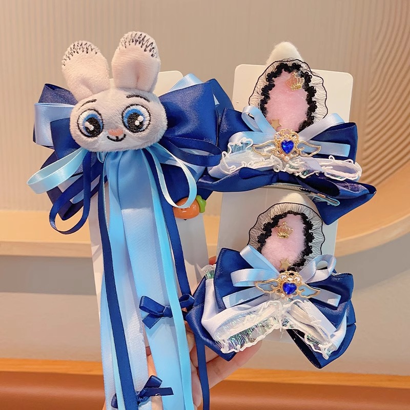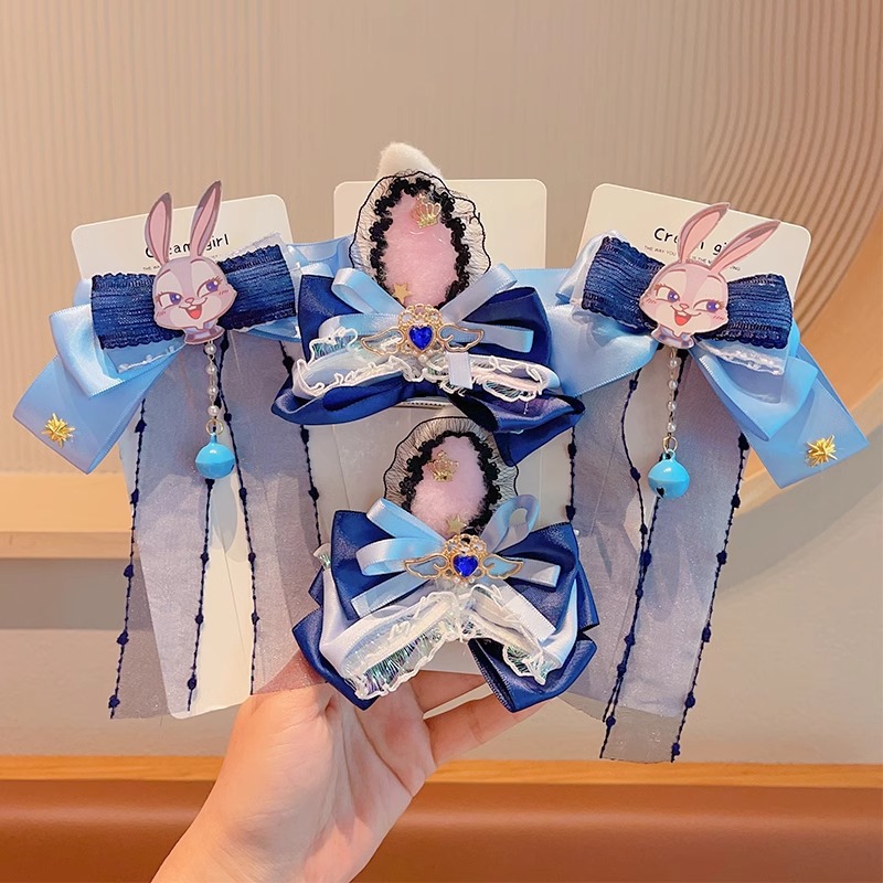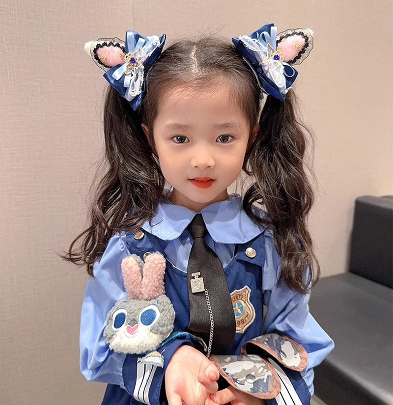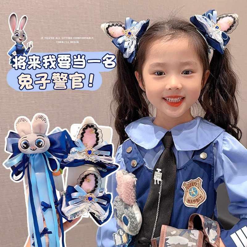 子供のウサギ警官ヘアピンジュディ頭飾り女の子新しい甘いヘアアクセサリーアニマルシティウサギの耳弓クラウン