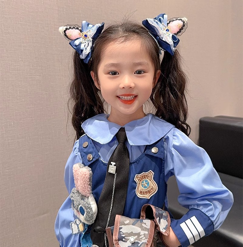 子供のヘアピン漫画ウサギ警察官頭飾り少女ズートピアウサギの耳弓ヘッドクリップヘアピンヘアアクセサリー