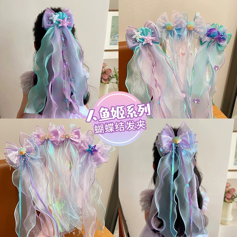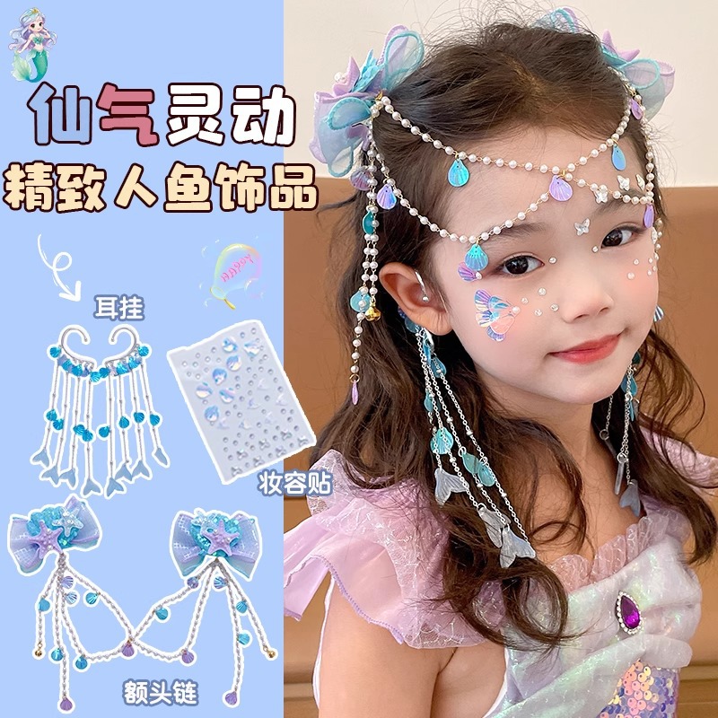 マーメイドリボン子供用ヘアアクセサリーマーメイド額チェーンかわいい女の子のヘアアクセサリータッセル耳掛けプリンセスヘッドドレス