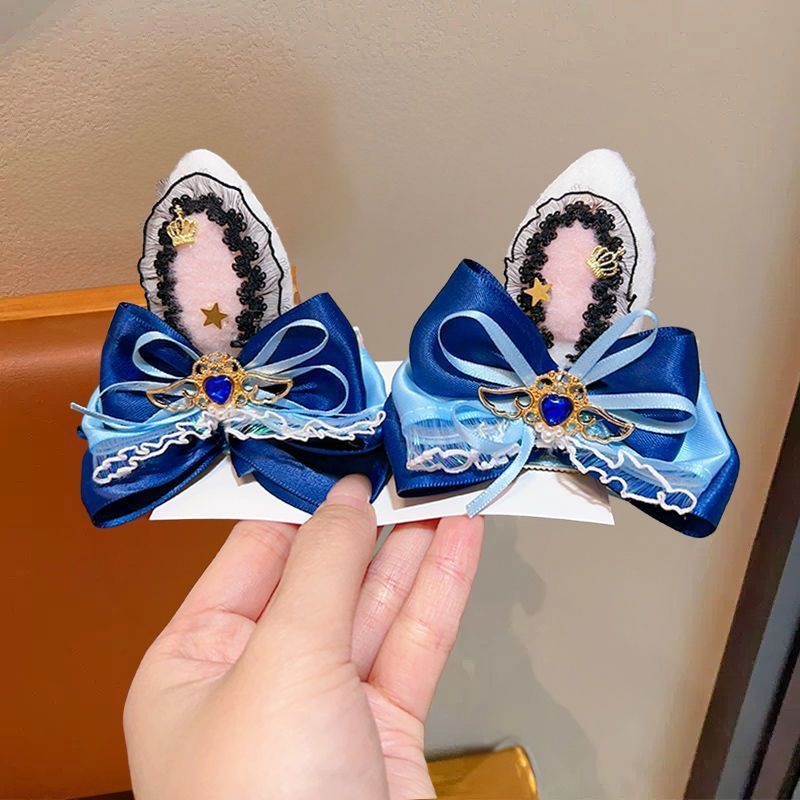 ウサギの耳トップクリップ,ウサギの警察官ブラックリボンクリップ,ウサギの警察官パールクリップ,ウサギの警官ベルクリップ,うさ耳レースクリップ,ウサギ警官黒弓シングル,かわいいウサギのリボンヘアピン単品
