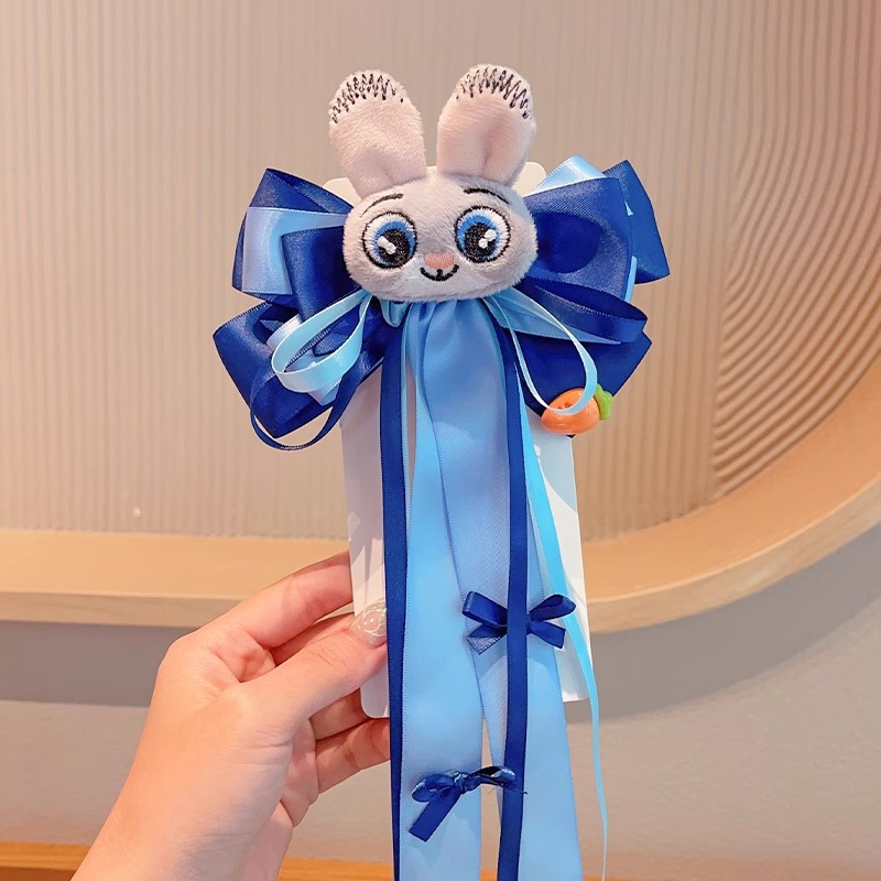 女の子のかわいいジュディの頭飾りの子供のウサギの警察官の髪飾りの女の子の蝶結びのウサギの耳のリボンのヘアピンのアクセサリー