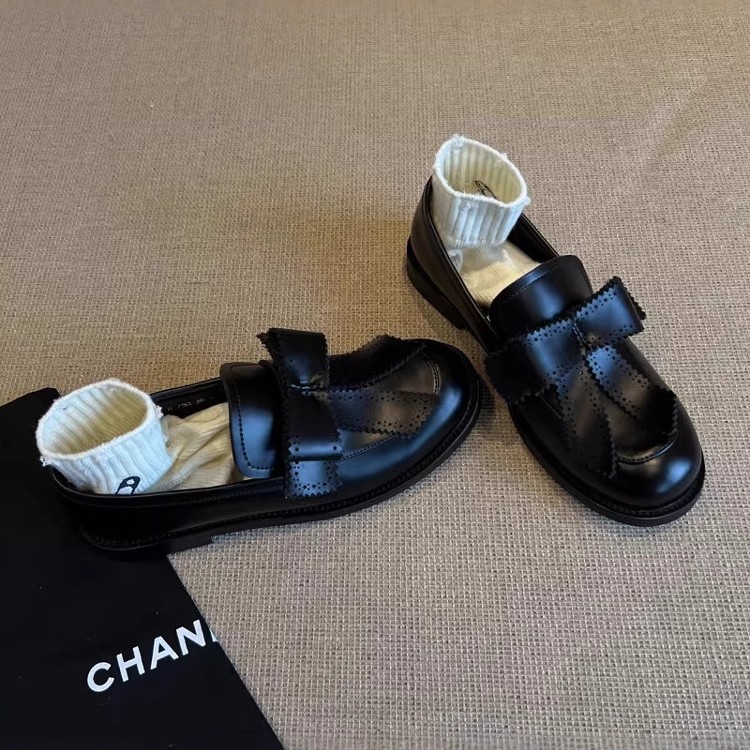 牛皮版~圆头蝴蝶结英伦风乐福鞋一脚蹬复古学院单鞋低跟小皮鞋女