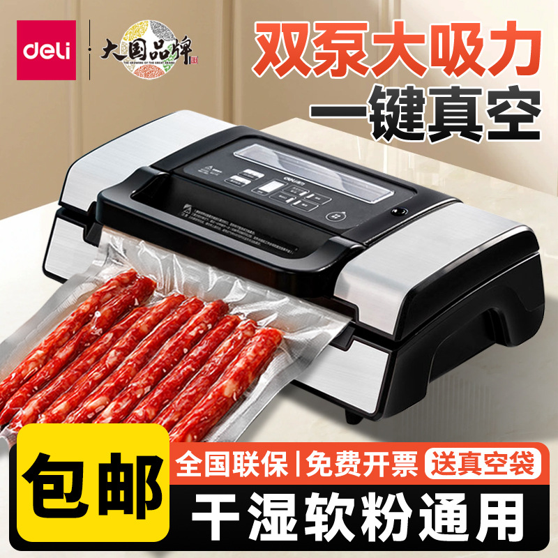 得力14891真空封口机商用 全自动食品保鲜机小型家用抽真空包装机