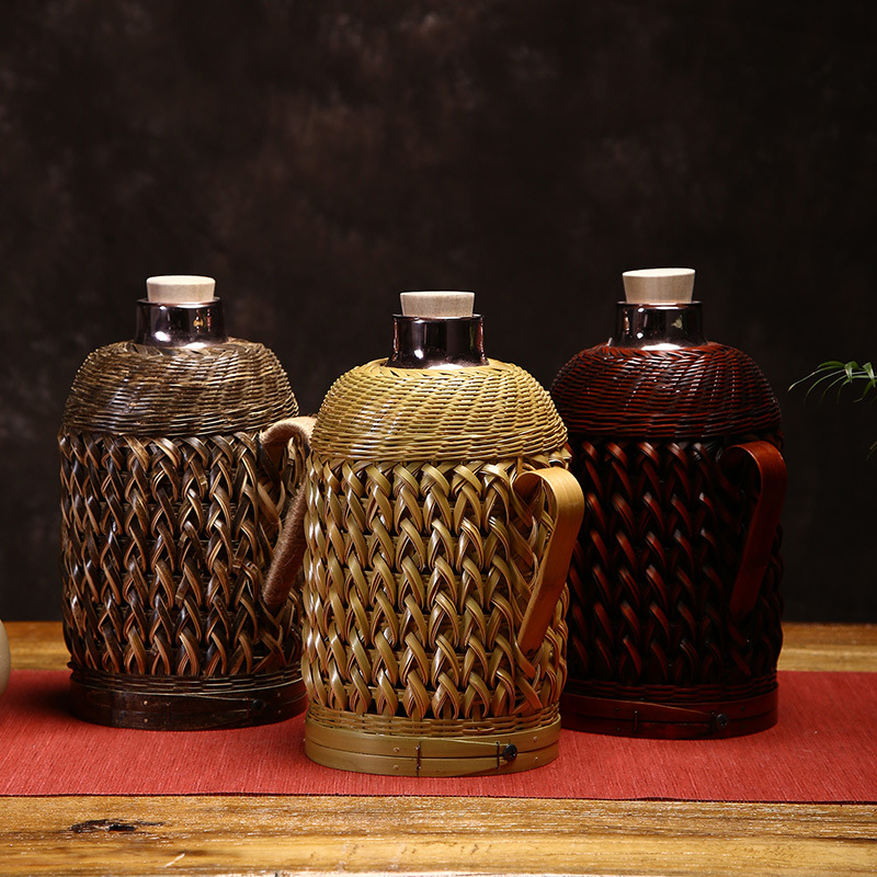 手作り竹編みレトロ文芸竹編み家庭用魔法瓶保温ポットガラス内胆魔法瓶開瓶