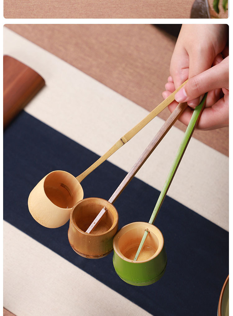 日本式水匙長柄分茶匙竹製茶匙竹水瓢箪水匙竹茶道零配煮茶部品