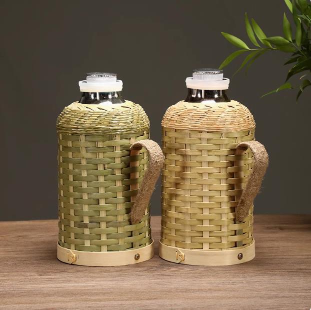 手作り竹編み保温ポット、保温ボトル、保温ケーシング、湯たんぽ、熱湯ボトル、保温水筒、レトロな外観、火傷防止