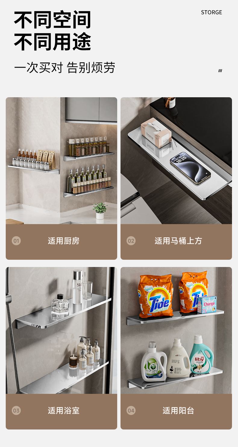 304ステンレス一字仕切り板穴なし浴室トイレ収納棚壁掛け洗面台鏡前棚