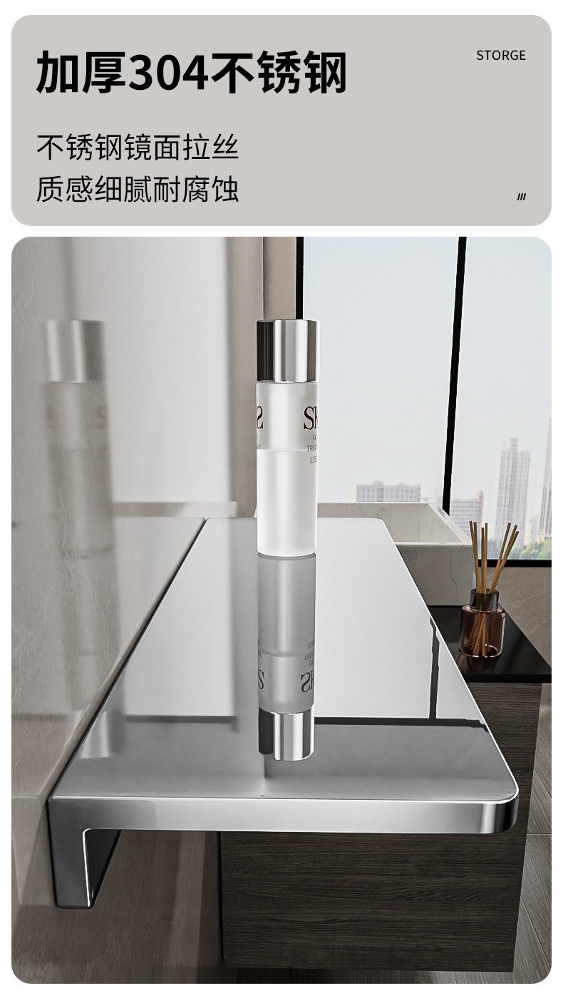 极简现代304不锈钢浴室镜前一字隔板酒店卫生间洗漱台手机置物架