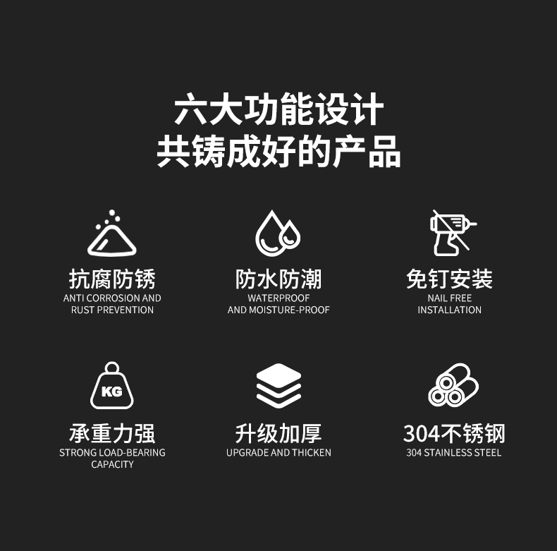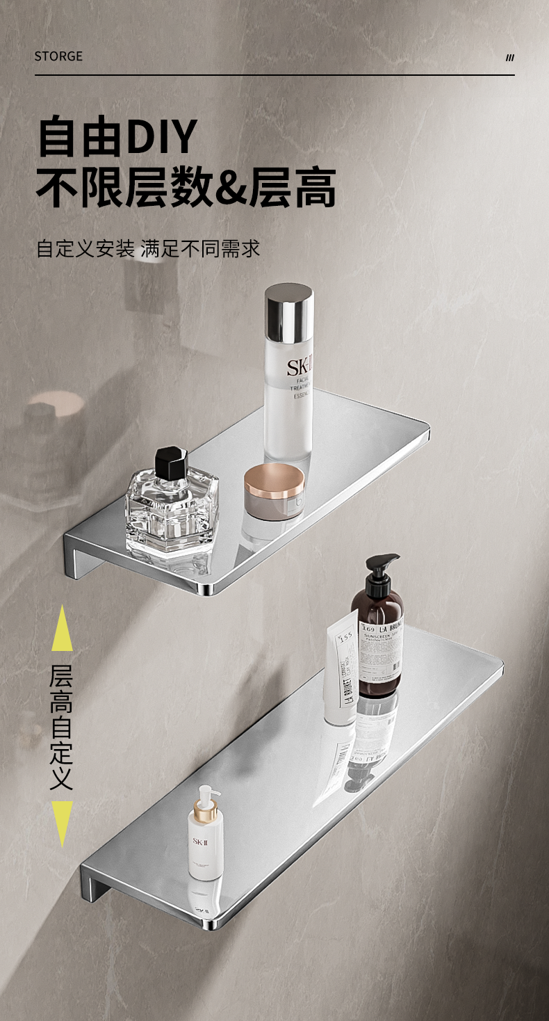 304ステンレス浴室棚穴なしトイレ洗面台鏡前一字仕切り収納棚