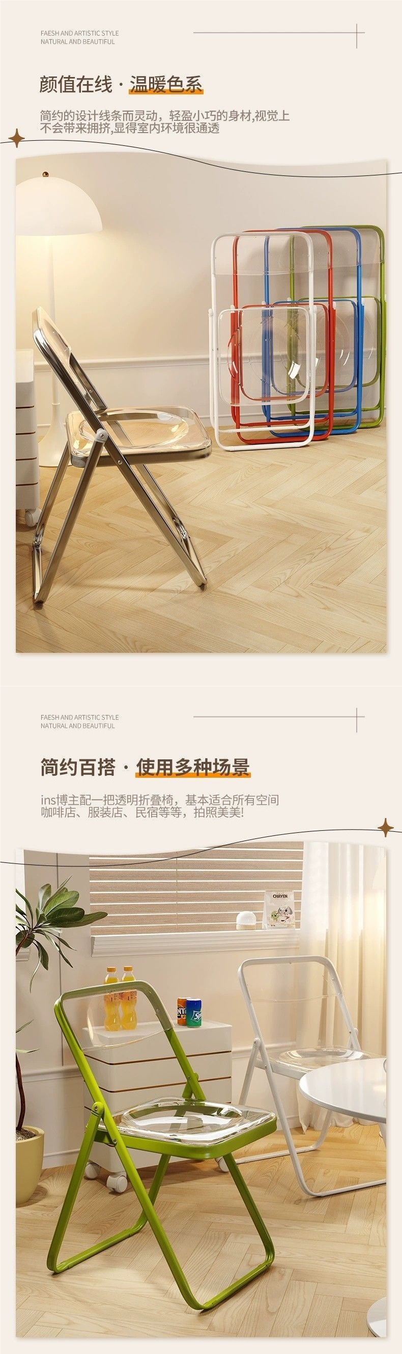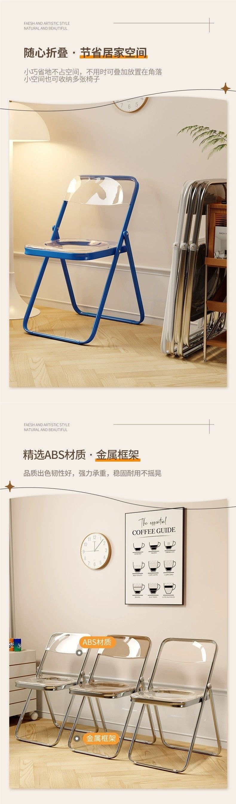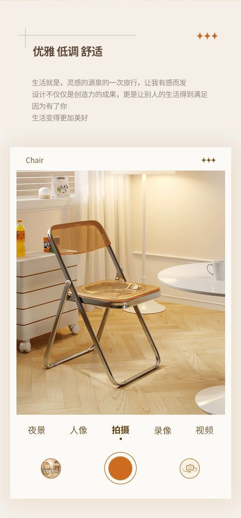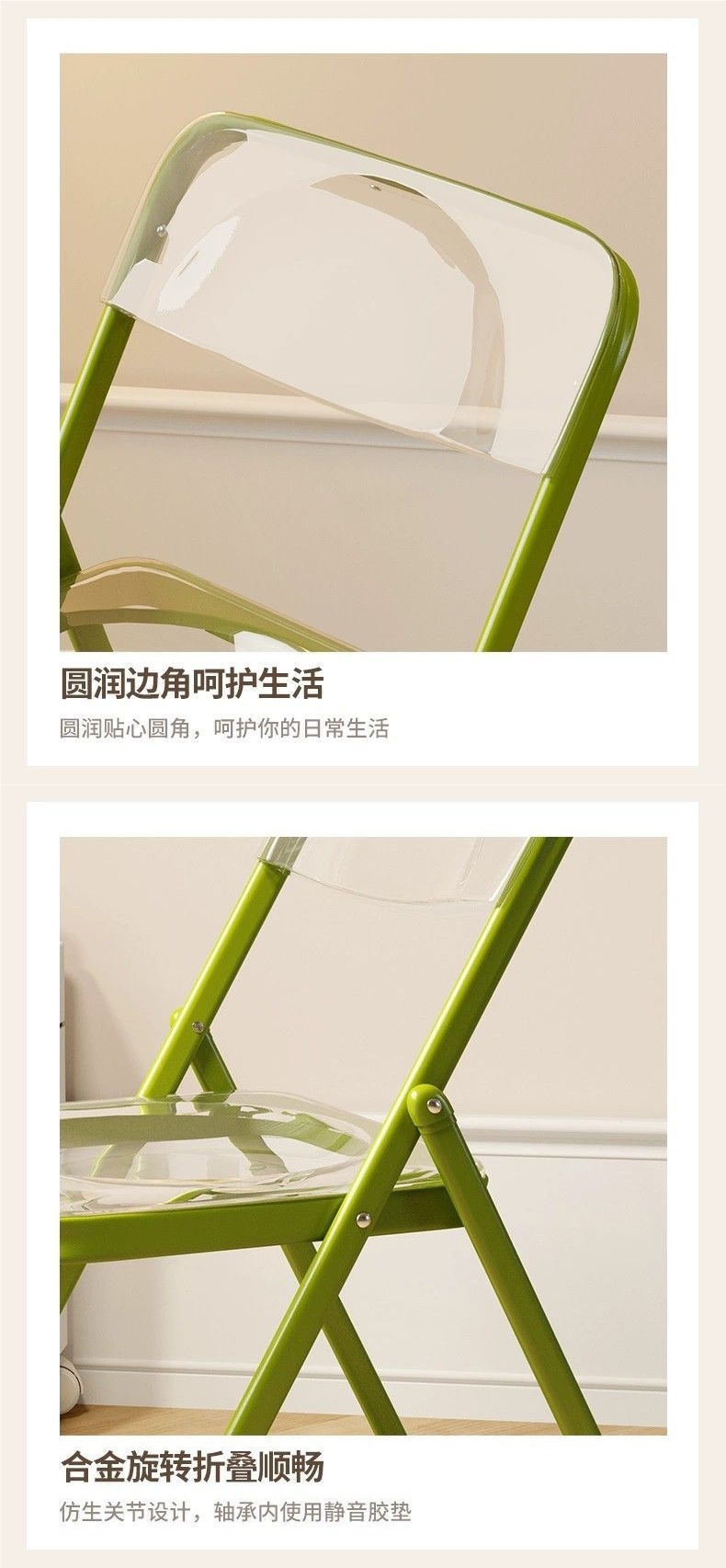 シンプルな折りたたみ椅子透明アクリル写真椅子インターネット有名人インスタイルクリスタル背もたれスツールホームダイニングチェア