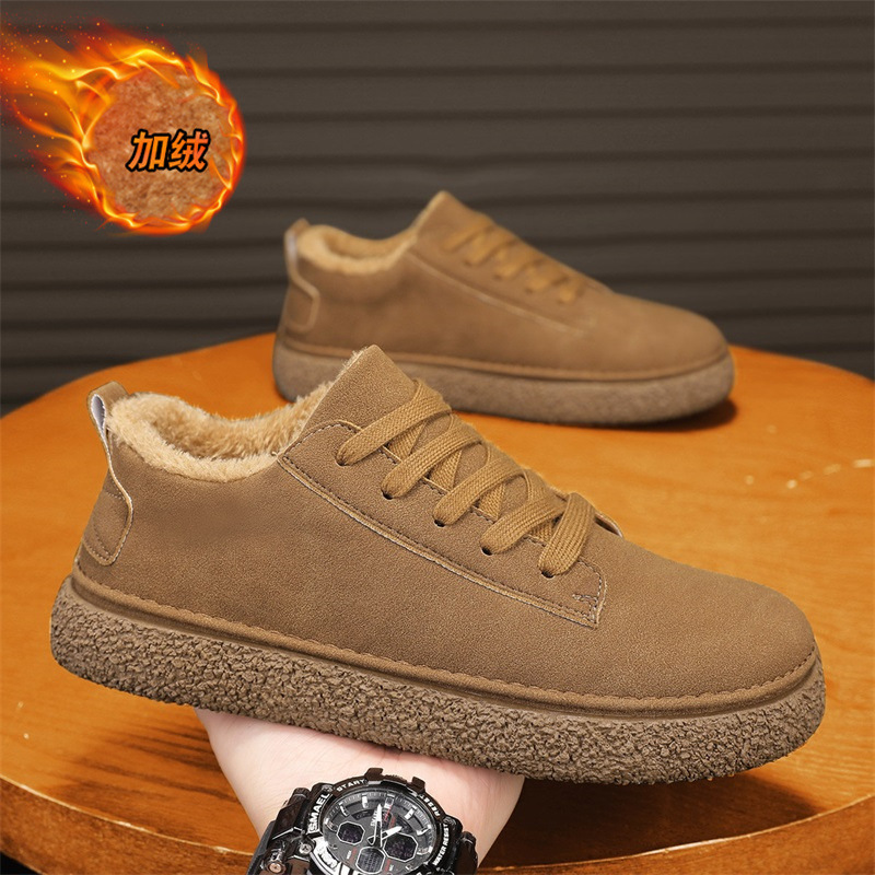 男性の靴のカジュアルなスエードのつや消しの冬の新型のベルベットの厚い英倫の復古の仕事の服のファッションの百合の潮流の板の靴