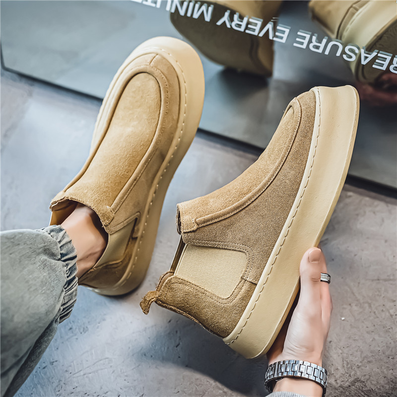 靴の男性はカジュアルな板靴の耐摩耗性の厚い底にベルベットをつけて、日本のレトロなカジュアルな男性のショートブーツを漕いでいます