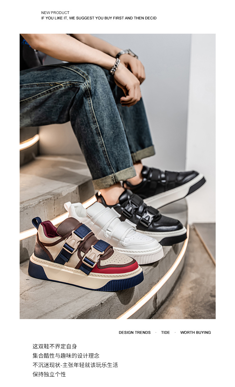 男鞋2025秋季新款潮流百搭休闲运动鞋厚底小白鞋简约纯色增高板鞋