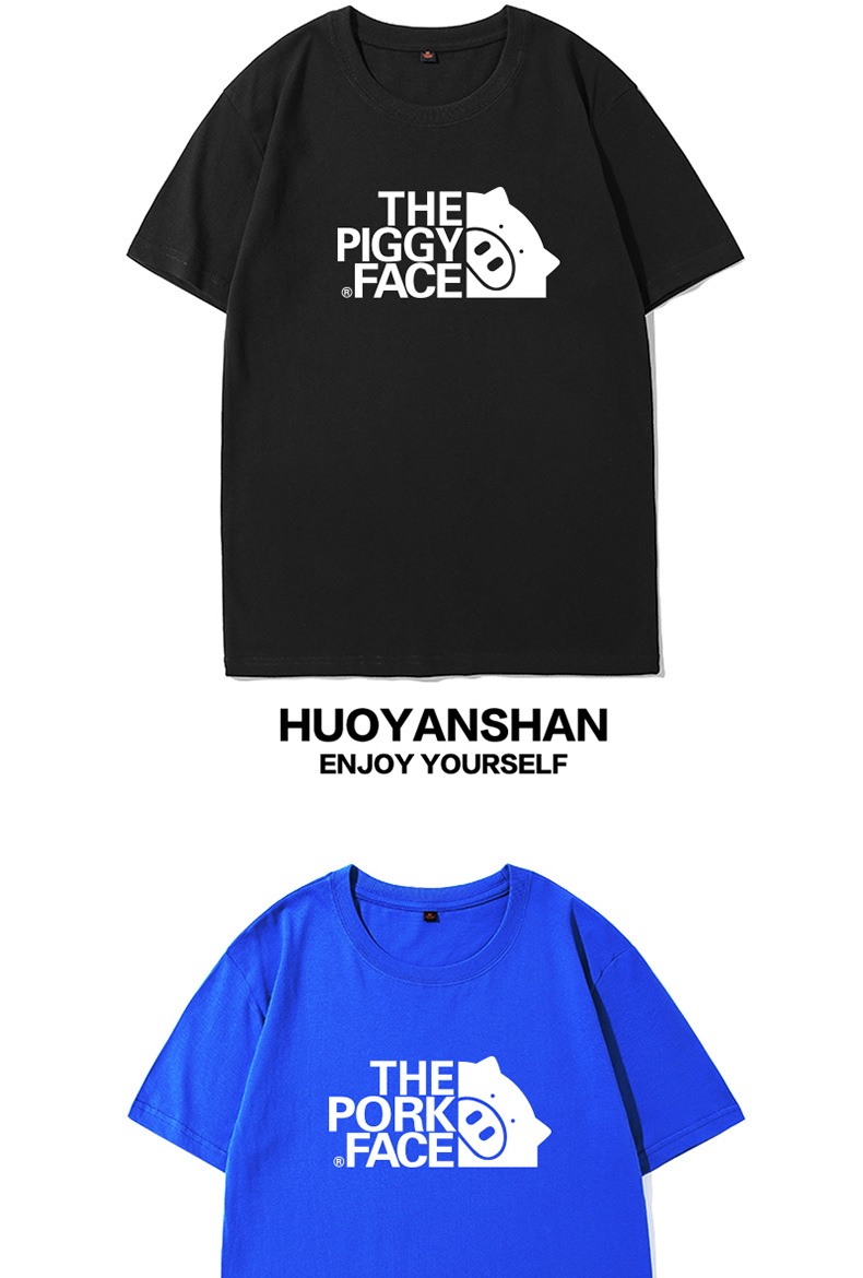 ピギーフェイス 半袖Tシャツ 男女兼用 ゆったり 大きいサイズ かわいい 豚 カップル 半袖