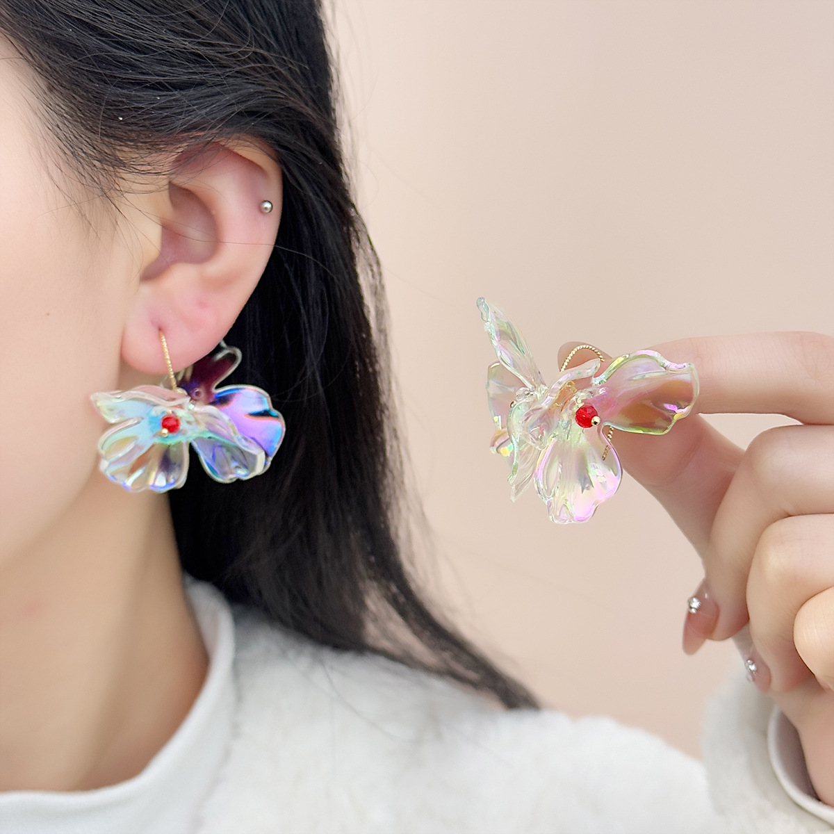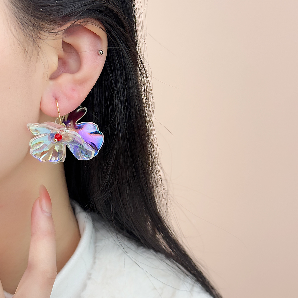 心の中の愛 ~ 雰囲気感の超仙水晶の花のイヤリングの小さい大衆のデザイン感の高級なinsは色のピアスのイヤリングにぶつかります。