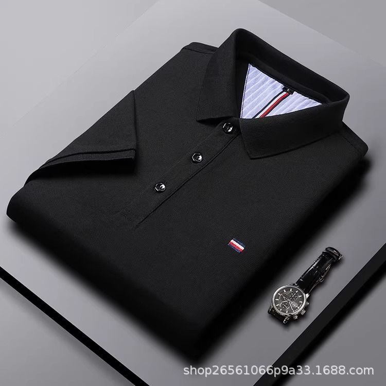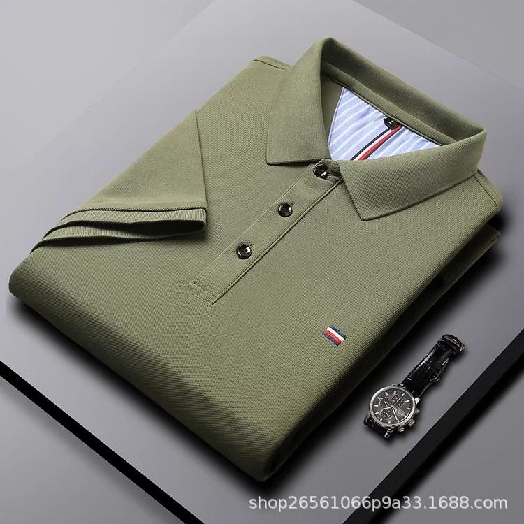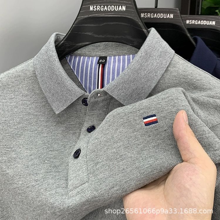 高品質ラペル中青年向け外国貿易トレンドブランド刺繍綿100%ノンアイロンポロシャツメンズ半袖トップス