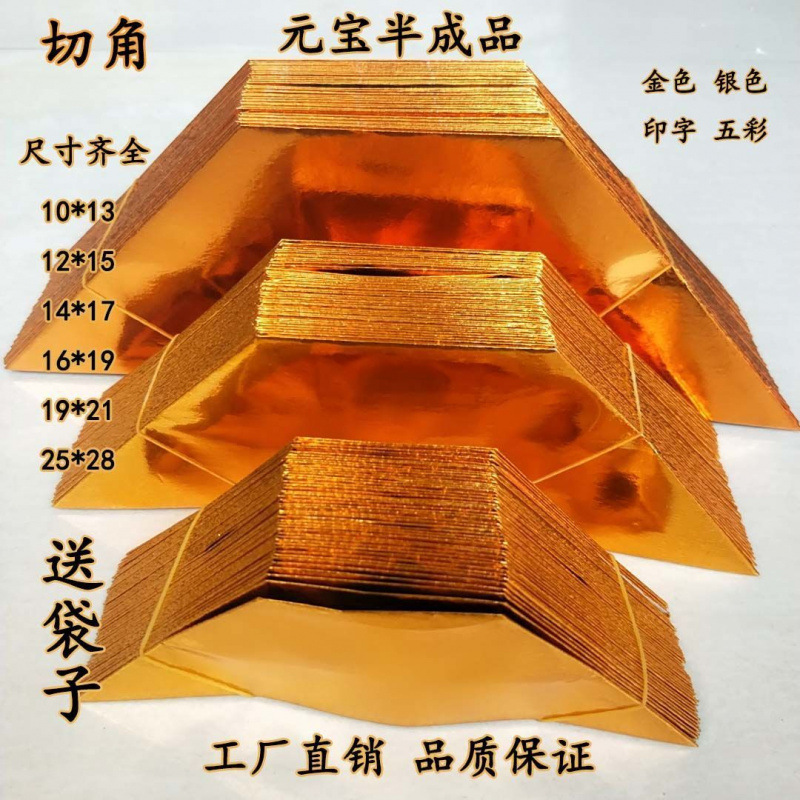 特大中小号金元宝半成品元宝纸切角元宝批发金银五彩印字包邮安