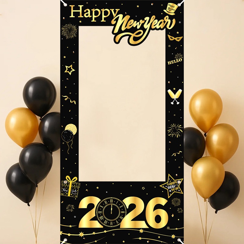 2026新年镂空拍照相框新年派对拍照背景布Happy New Year拍照相框