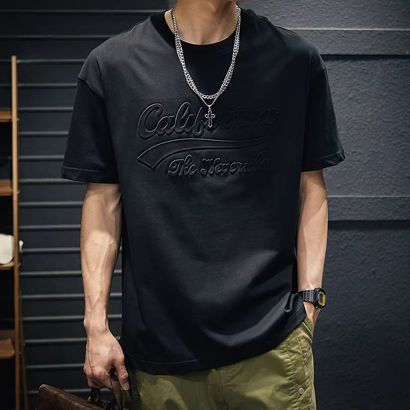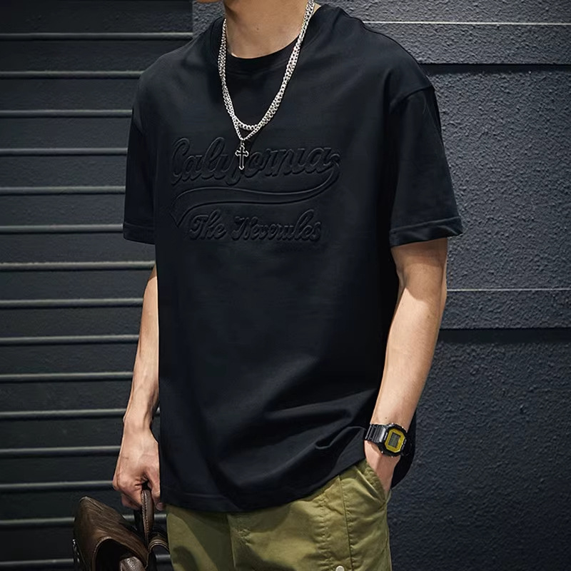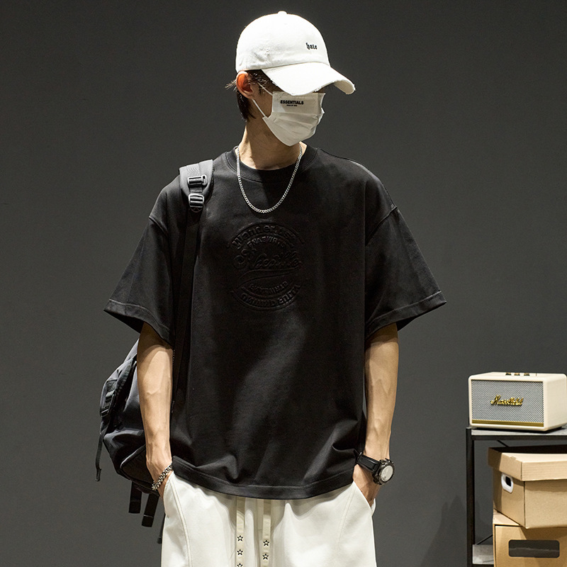 元のメーカーの黒い重いポンドの半袖のtシャツの男性の高級感の夏の新型の紳士服のゆったりしている大きいサイズの男性の男子学生