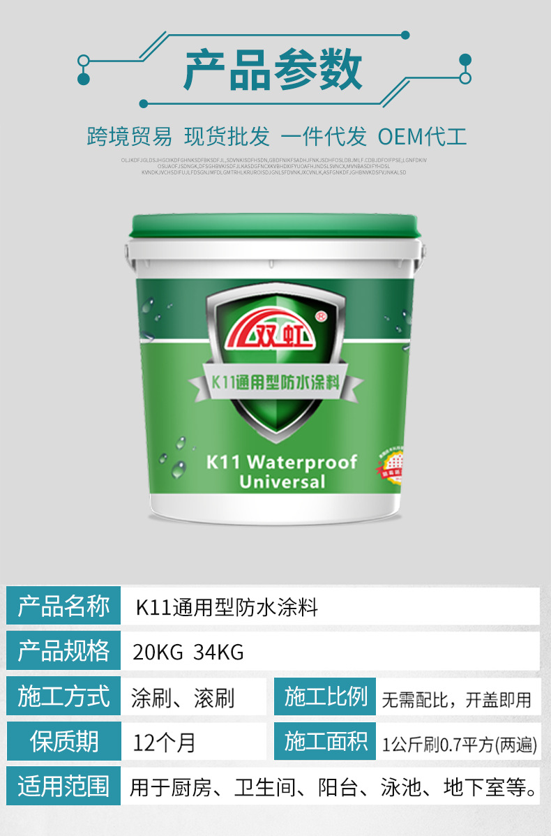 ダブル虹工場直販キッチントイレプールK11防水ペースト壁面カラー剛性防水塗料