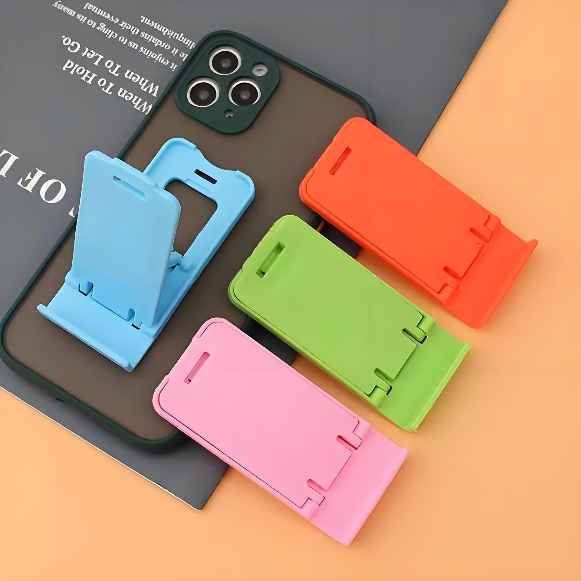 新型折りたたみ式卓上タブレット・スマホスタンド、インジェクション成形で色変更可能、ロゴ入りギフトにも最適、携帯に便利